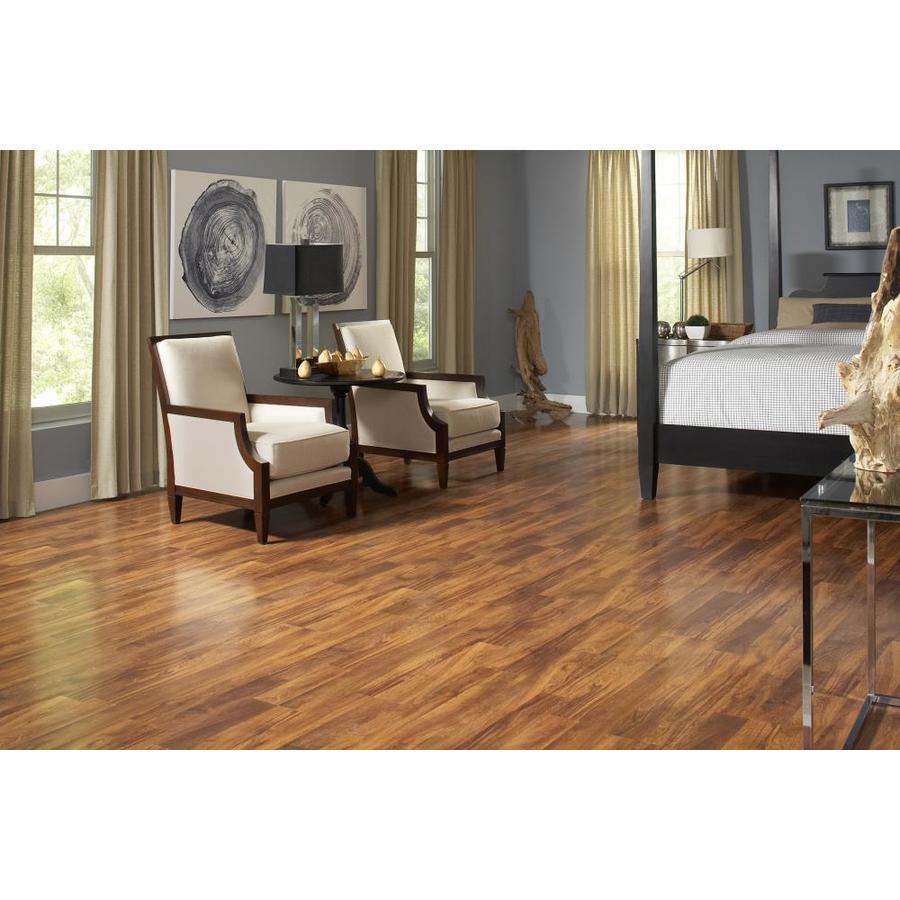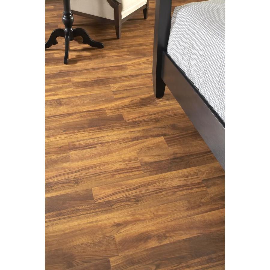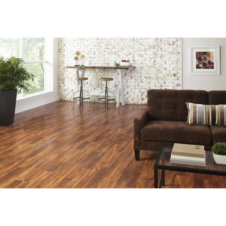 The natural mixture of hues in this medium tone laminate flooring with a square edge, offers the charming look of real wood To make your room appear larger, install planks parallel to the longest wall 30-Year Limited Warranty with AC3 wear layer that provides tough scratch and scuff resistance 8mm thickness Easy to install locking system requires no glue and makes installing a laminate floor an easy DIY project - coordinated moulding available Underlayment is required and we recommend Pergo Gold for easier installation and industry leading sound, thermal and moisture protection CARB Phase 2 Compliant Manufactured in the USA with materials from USA and Europe Planks per carton: 8 Carton weight: 29.51 lbs
