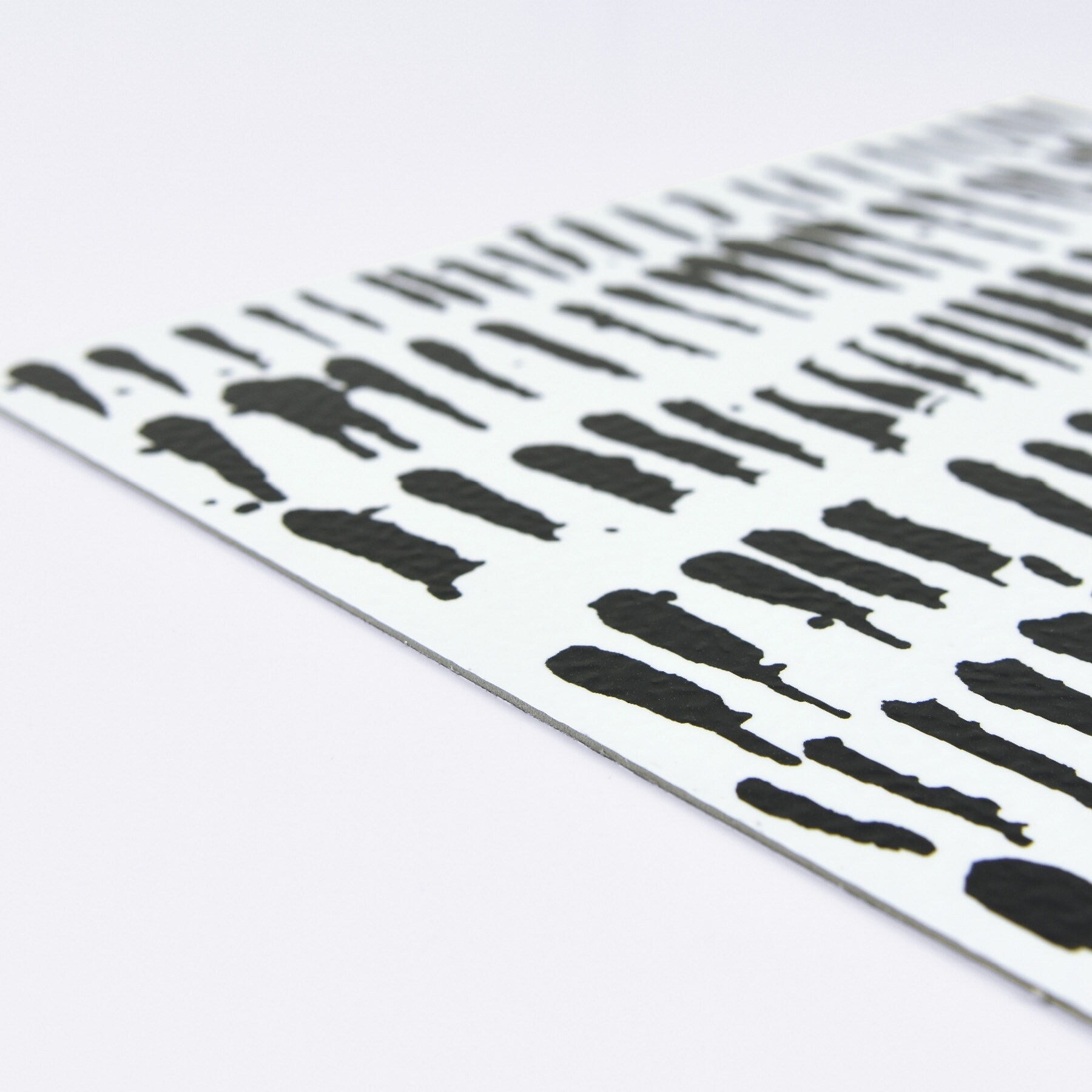 Contemporary peel-and-stick vinyl floor tiles with a bold black brushstroke pattern. Each 12-in x 12-in tile installs without grout or special tools and offers water-resistant, washable performance for indoor spaces.