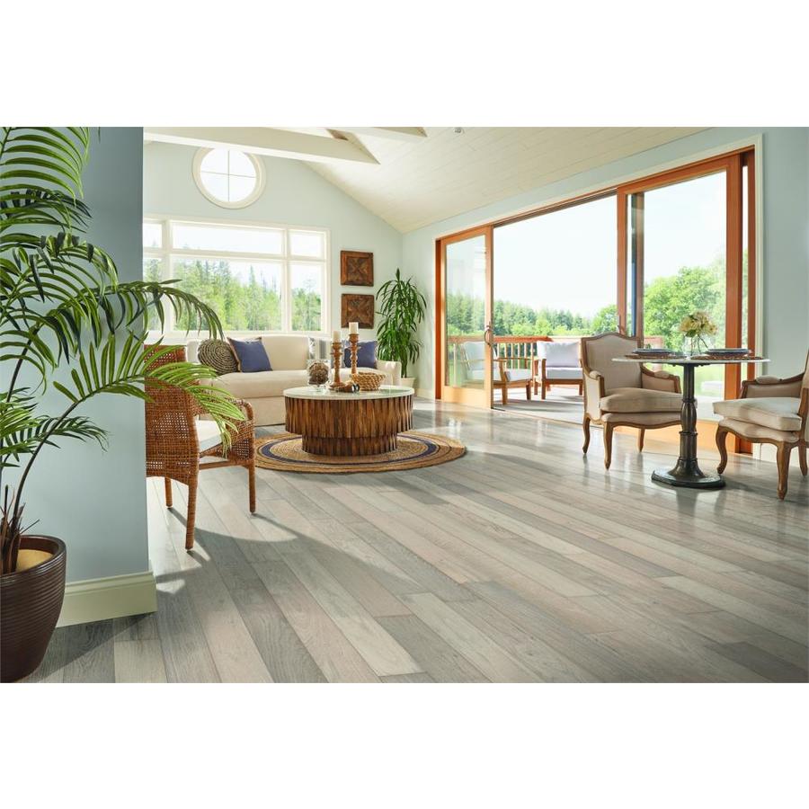 Hydropel by Bruce is available in a variety of wood species including real hickory, oak and maple Appropriate grades for installation include above grade, on grade or below grade 7/16 in. thickness x 5 in. width x varying length planks Item coordinates with mouldings made to match 3/8 in. engineered hardwood flooring 22.6 sq ft per case and case weighs 46 lbs Engineered hardwood flooring construction for glue, staple or click installation Planks have micro edges Residential and commercial use with a lifetime residential and 15-year commercial warranty Make sure to check out other items in the newly launched Hydropel collection by Bruce