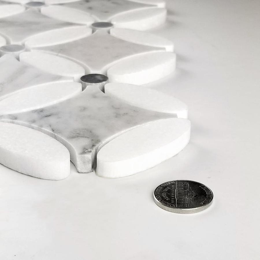 Abolos Grade 1 Premium Marble Tile Square Feet Per Case: 10 Pieces Per Case: 10 12 IN Width x 12 In Length x 0.315 In Thick Approved for Wall and Floor Use Approved for Indoor and Outdoor Use Approved for Premium Instaset Install Perfect for a Kitchen Backplash, Bathroom Shower, or Fireplace Approved for Commercial and Residential Use