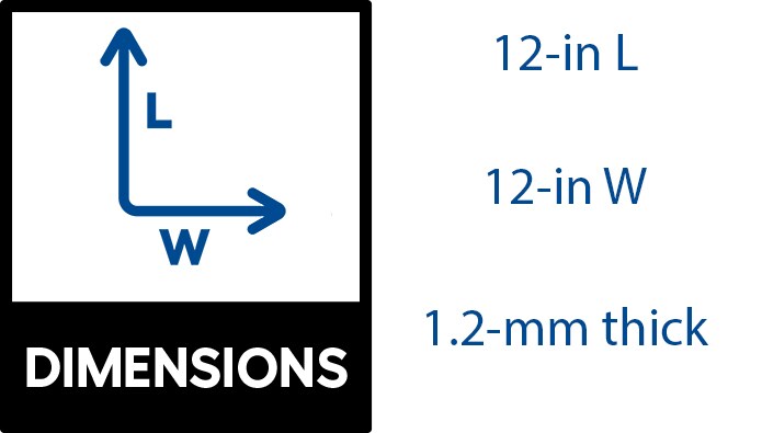 A: Tiles are 12 inches by 12 inches and 1.2 mm thick with a 0.07-mil wear layer.