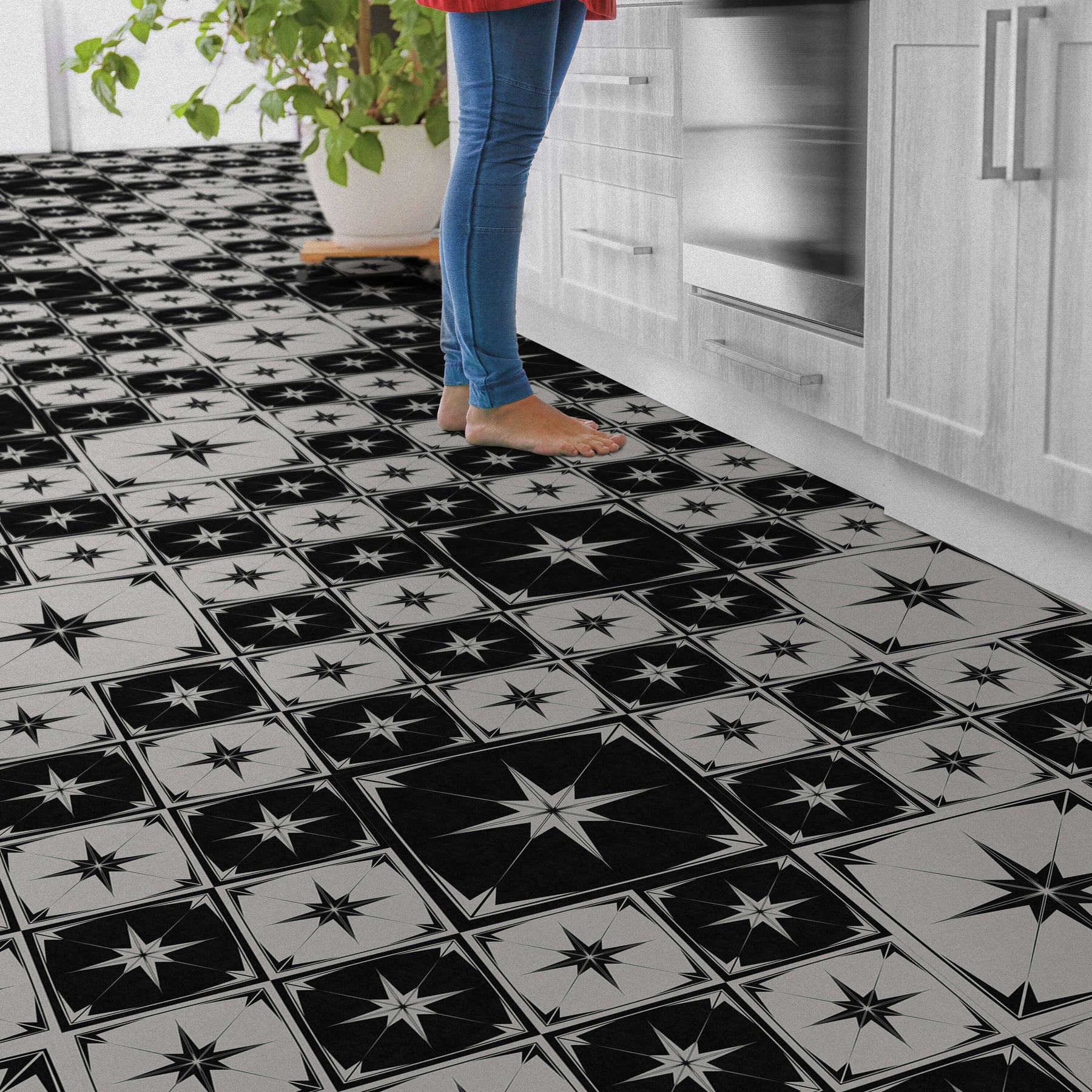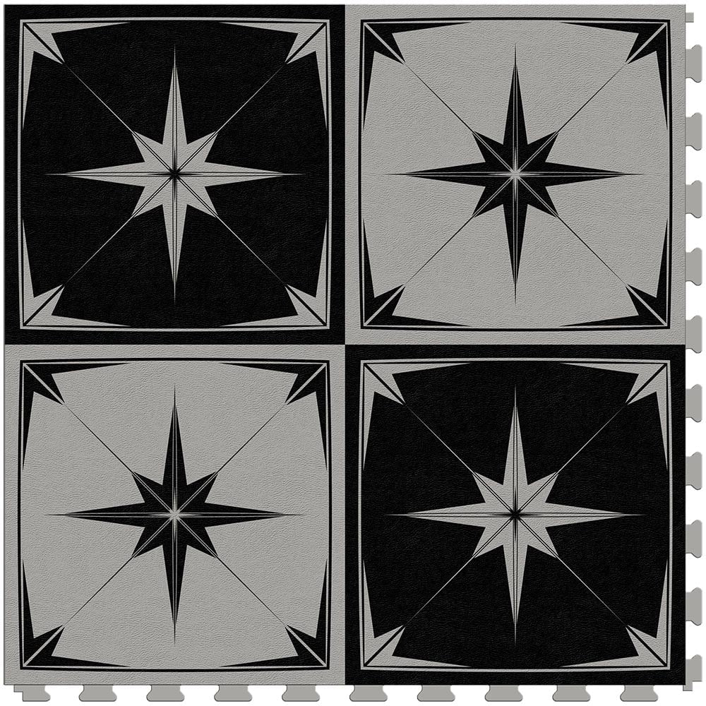 Geometric luxury vinyl tiles from Perfection Floor Tile’s Geo Collection deliver a dramatic Astral Gray/Satin patterned look with a satin finish. These 20-in x 20-in, 5‑mm thick tiles interlock for a floating, water-resistant floor that’s easy to install and maintain, ideal for kitchens, baths, mud rooms, and more.