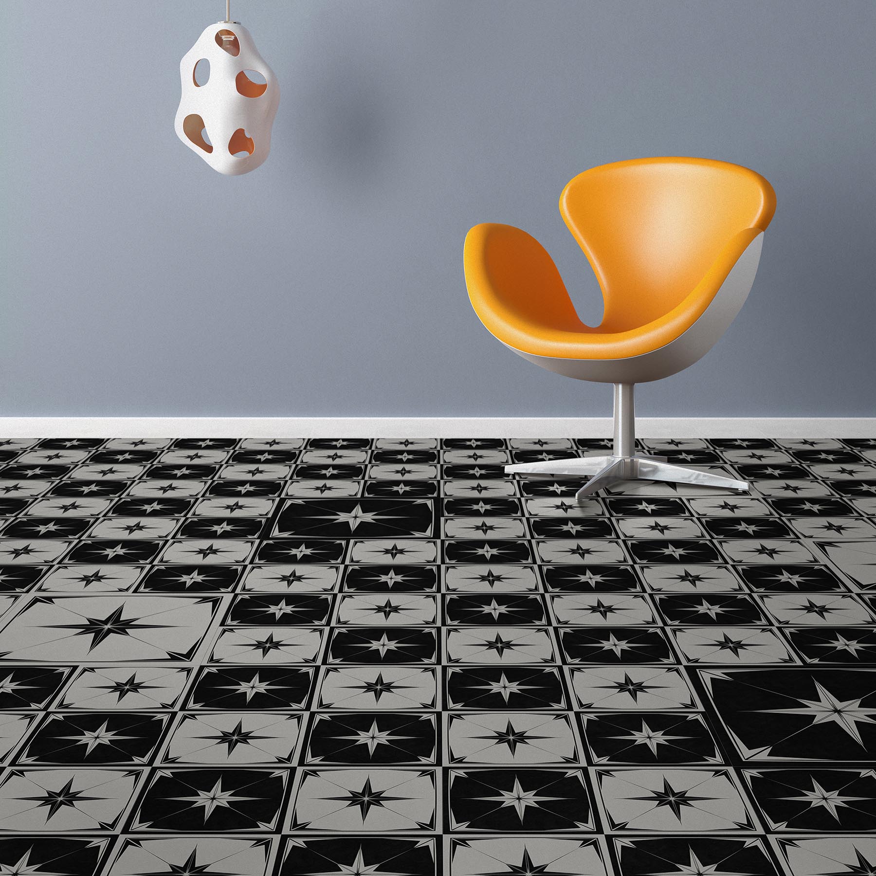This Astral Gray motif choreographs a bold starburst across your floor, instantly energizing a room with graphic rhythm. The satin finish softens the monochrome palette, giving it a sophisticated, gallery-worthy presence. Pair it with matte black hardware and warm walnut to let the pattern sing, or contrast with crisp white cabinetry for a modern statement. It’s an elegant foundation that turns everyday spaces into destinations.