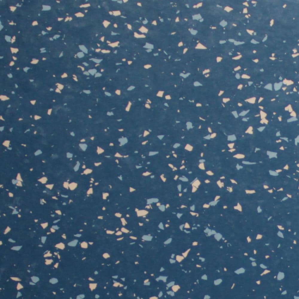 Durable Flexco rubber tile delivers low-maintenance performance and seamless style for commercial and residential spaces. The Delft Pansy speckled blue tile installs with glue and is tough enough for heavy traffic while resisting bacteria and fungi per ASTM G21.