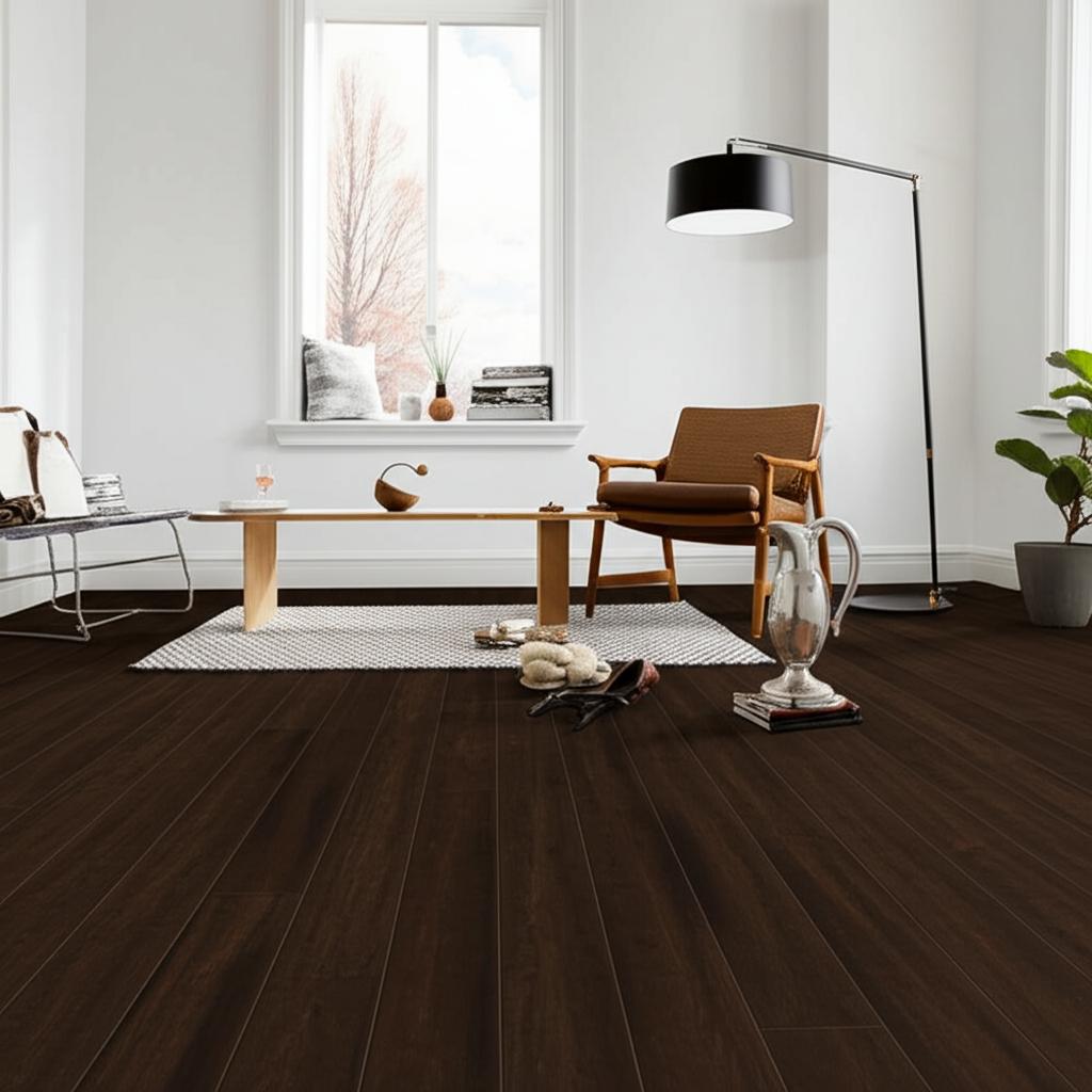 Transform your living space with the rich, hand-scraped texture of this solid bamboo flooring. Its deep brown tones and antique finish evoke a sense of timeless elegance, perfect for both modern and rustic interiors. Pair it with neutral furnishings to create a harmonious and inviting atmosphere. This flooring is not just a design choice; it's a statement of sustainable luxury.