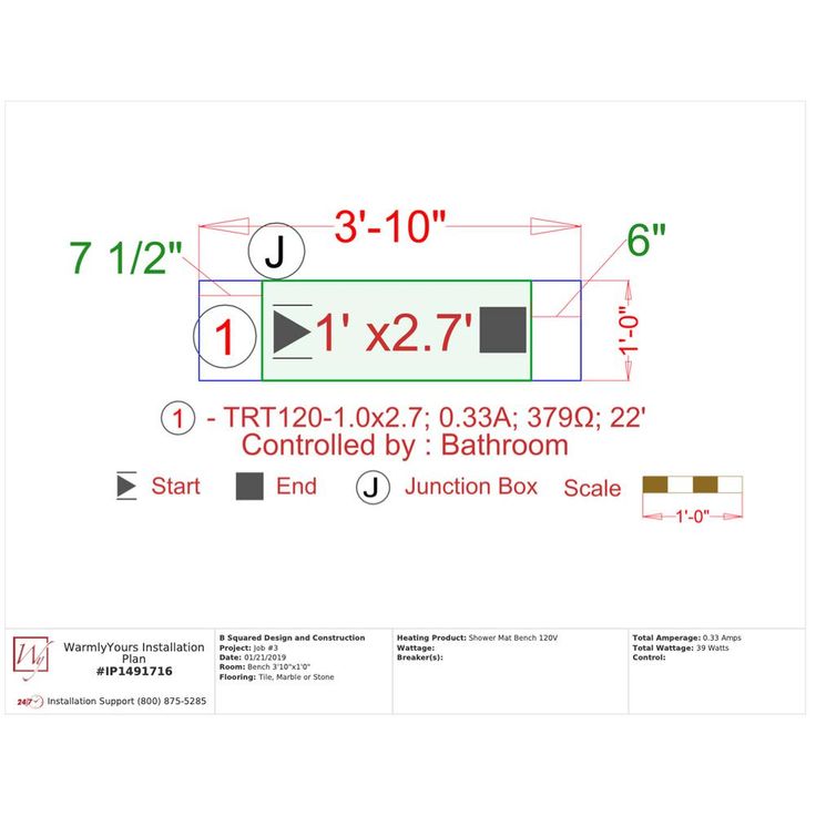 Create a spa experience right in your own home. Add a WarmlyYours TempZone™ Twin Shower Bench Mat to your shower. UL Listed and safe for installation in wet locations, these 120V, 11.5 in. X 32 in. mats produce 15 watts per sq. ft. to add gentle warmth and comfort to your shower bench. Fully backed by our unbeatable 25-year No Nonsense™ Warranty, the TempZone™ Twin Shower Bench Mat comes with a twin-conductor heating element and a 14 AWG cold lead.