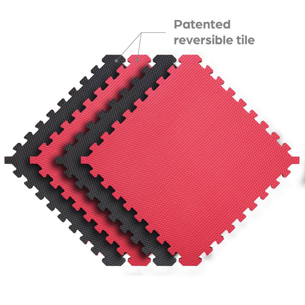 • Dual-Sided Design: Truly reversible red/black tiles to create custom patterns