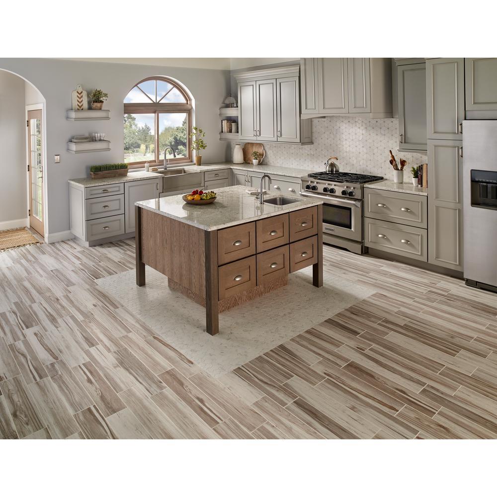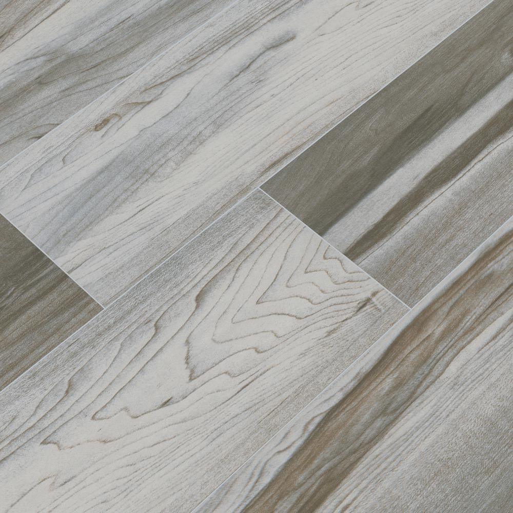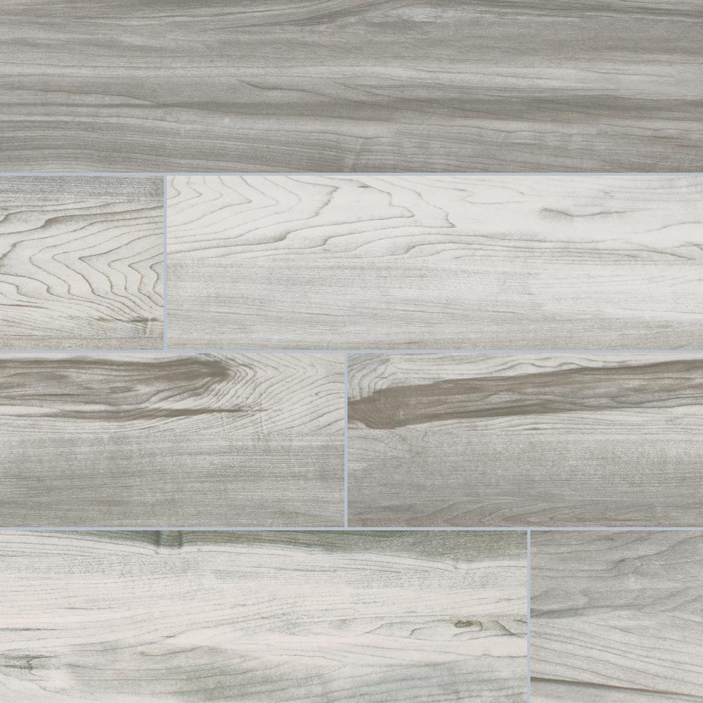 Enhance your interior design with the warming comfort of this MSI Carolina Timber White 6 in. x 24 in. glazed ceramic floor and wall tile. Crafted with a charming blend of soft white tones, this exquisite tile uses authentic veining and graining to replicate the appearance of true tigerwood. Use if for residential and light-duty commercial applications. The low-sheen, matte tile works perfectly for floors, wall and countertops. It is a great option as backsplash tile, too. This tile is highly durable, suiting kitchen and bathroom applications. It's easy to clean and won't harbor germs. Impervious to water and stains, this rectified tile is mechanically finished on all sides for uniformity. Its precise sizing allows for a thinner grout joint, which results in a clean, professional install and reduces staining issues.