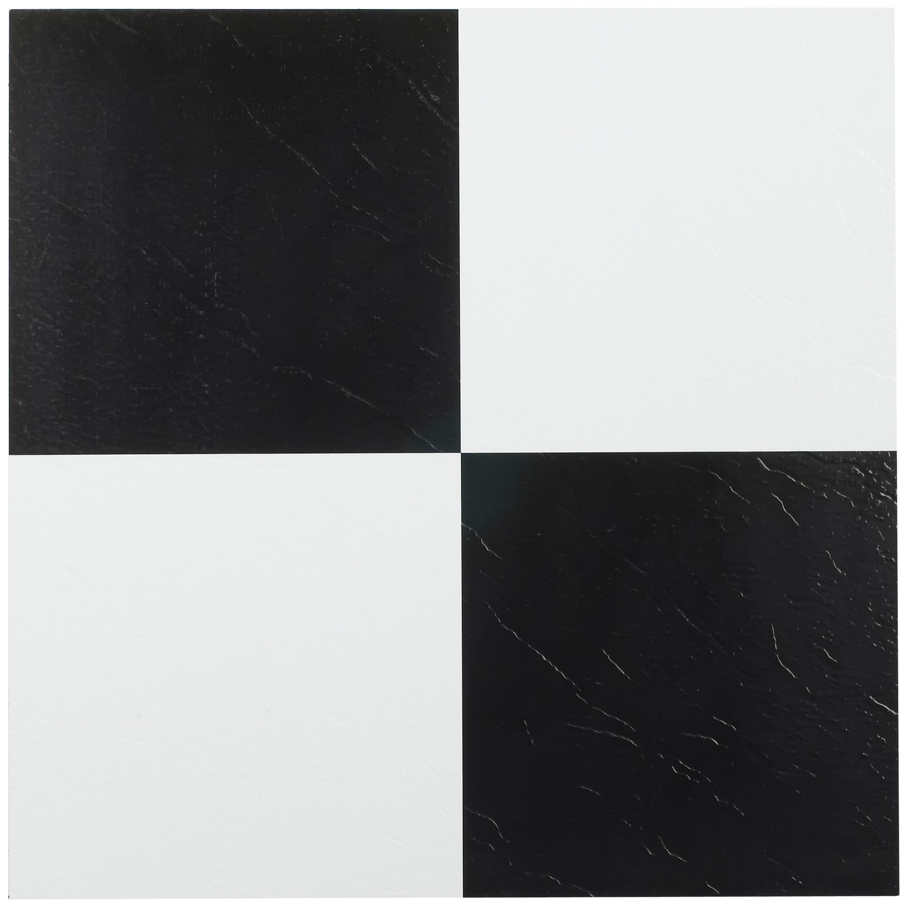 Update floors fast with Tivoli peel-and-stick vinyl tiles in a classic black-and-white check pattern. Each 12 in x 12 in tile is 1.2 mm thick with a no-wax finish and self-adhesive backing for easy DIY installation. Sold as a 45-piece carton covering 45 sq ft.
