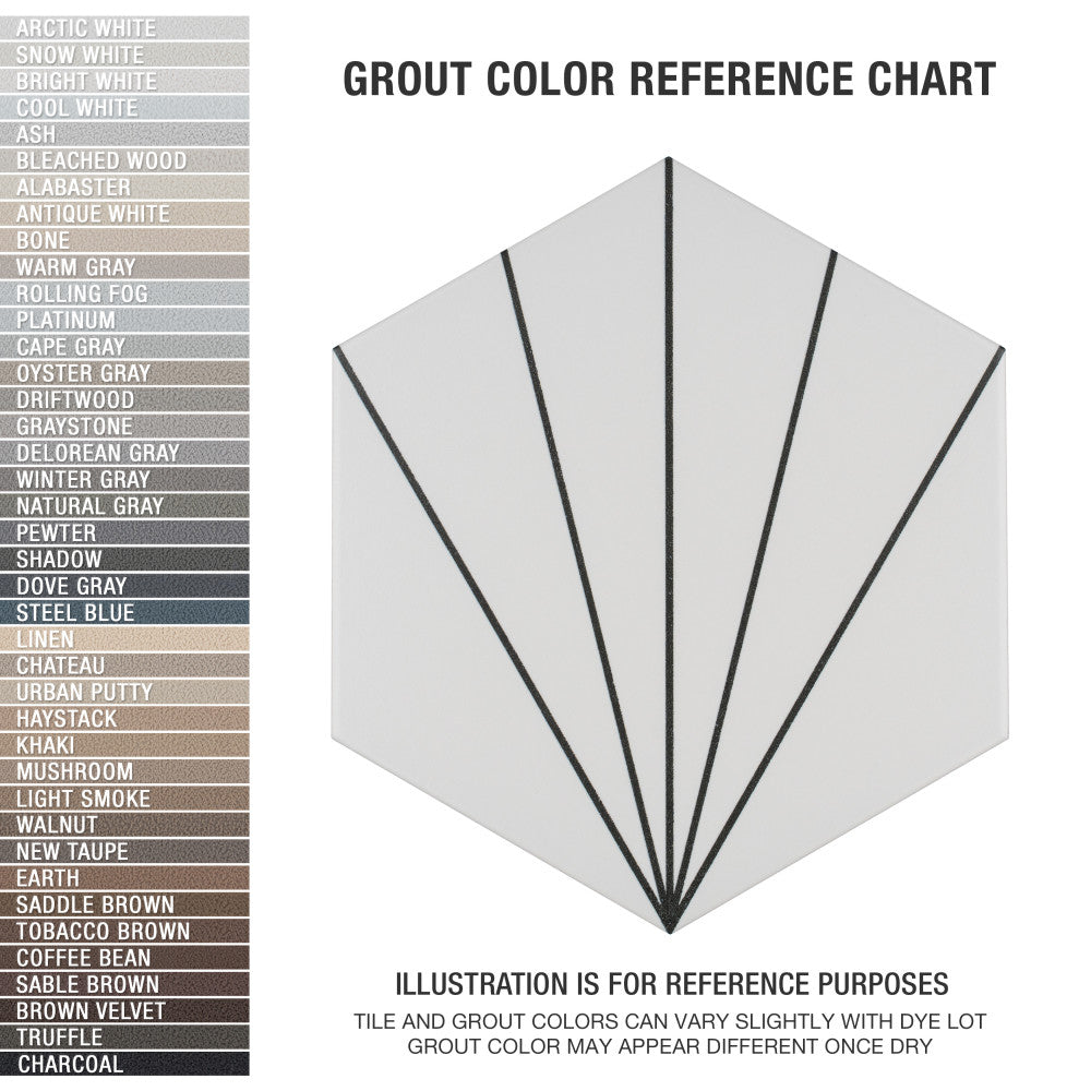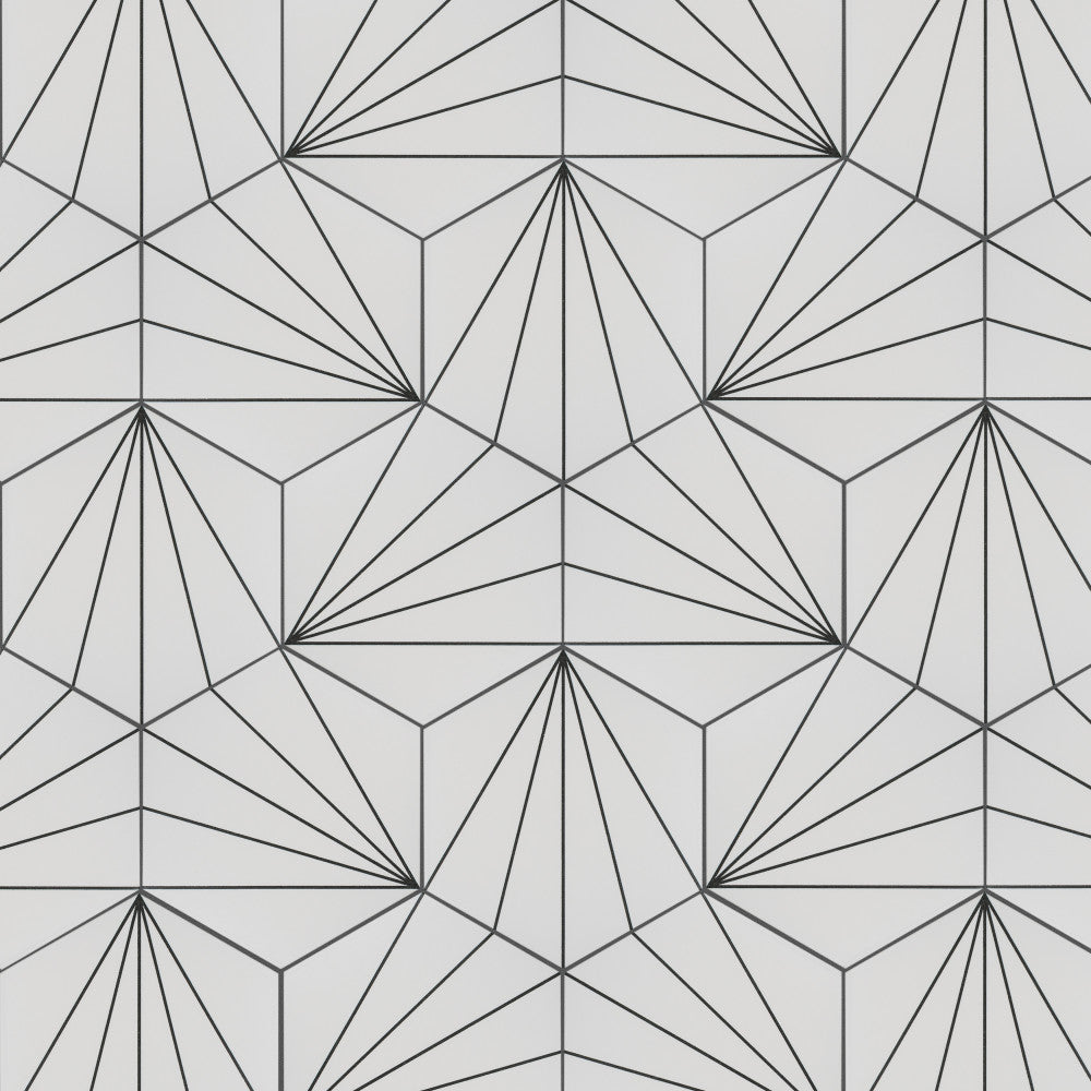 This tile sketches a refined starburst across your surfaces, creating a crisp, architectural rhythm that instantly modernizes a room. The satin porcelain finish catches light softly while the linear graphic sharpens the silhouette. Lay it wall-to-wall in a bath or mix with charcoal grout for couture contrast. It’s a chic essential for spaces that crave graphic luxury.