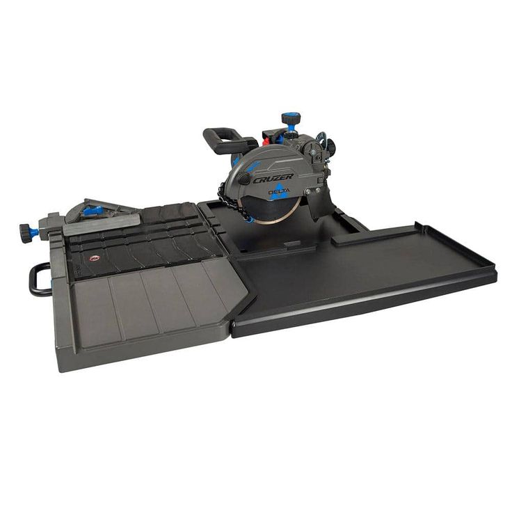 Get powerful, professional results with this Delta Cruzer 7 in. Wet Tile Saw. Its 13 amp motor cuts through natural and man-made stone, tile and pavers. The diamond cutting wheel handles stone up to 2-3/8 in. thick and delivers a best-in-class rip capacity of 24 in. and an 18 in. diagonal cut capacity. The saw is constructed using a heavy-duty rail system with 12 bearings that's engineered for smooth, straight and accurate cuts. Adjust the dual water nozzles for optimal water placement on the blade to minimize over-spray and keep the blade cool for superior cutting performance.