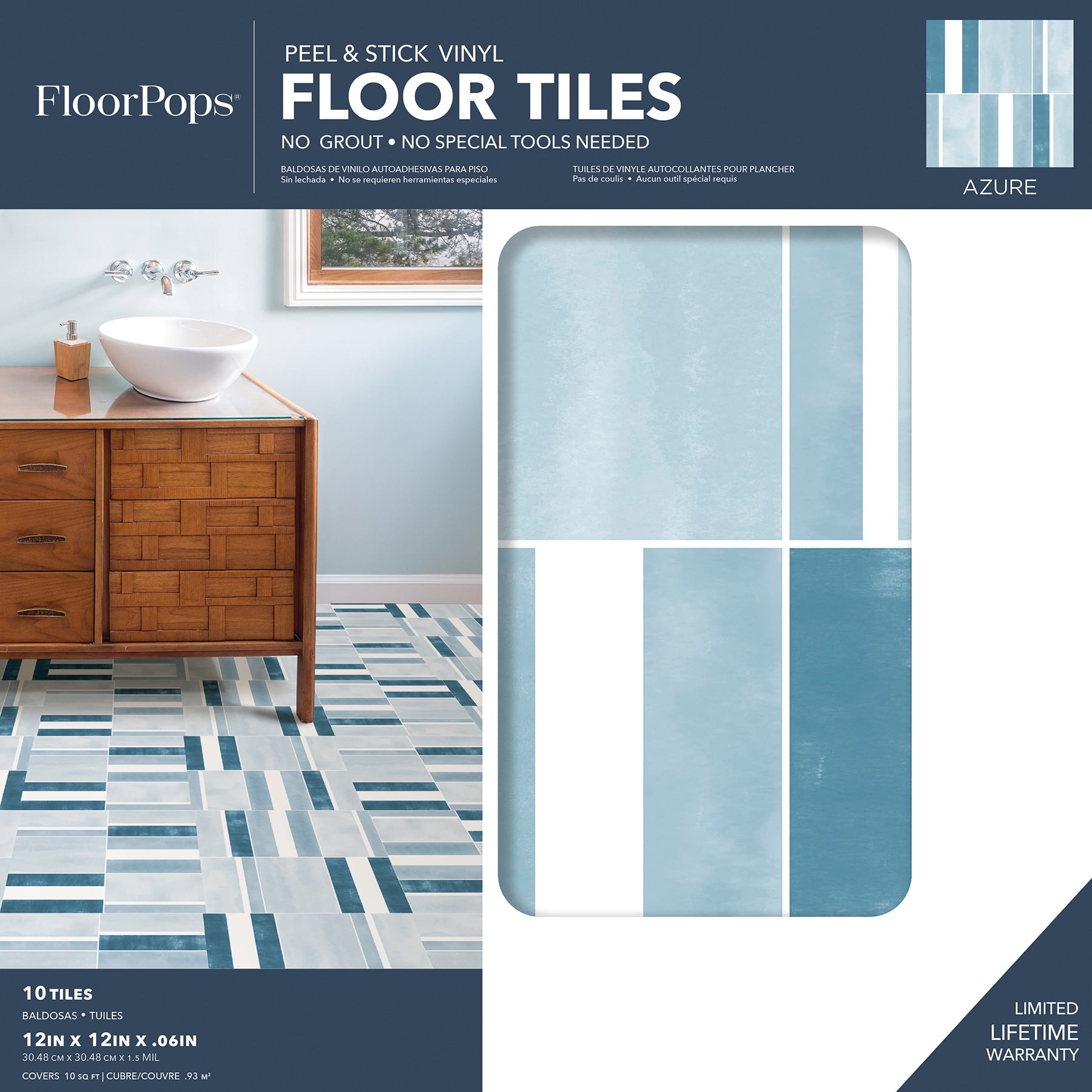 FloorPops Blue 12-in x 12-in Water-Resistant Peel-and-Stick Vinyl Tile Flooring, 20-sq ft Carton