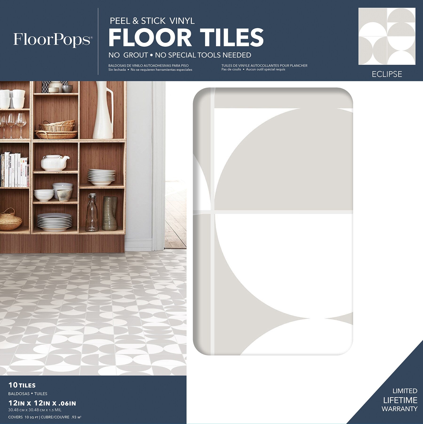 Refresh floors fast with these water-resistant peel-and-stick vinyl tiles from FloorPops. Each 12-in x 12-in tile features a modern white geometric pattern and a durable low-lustre finish for easy-care performance in kitchens, baths, and laundry rooms.