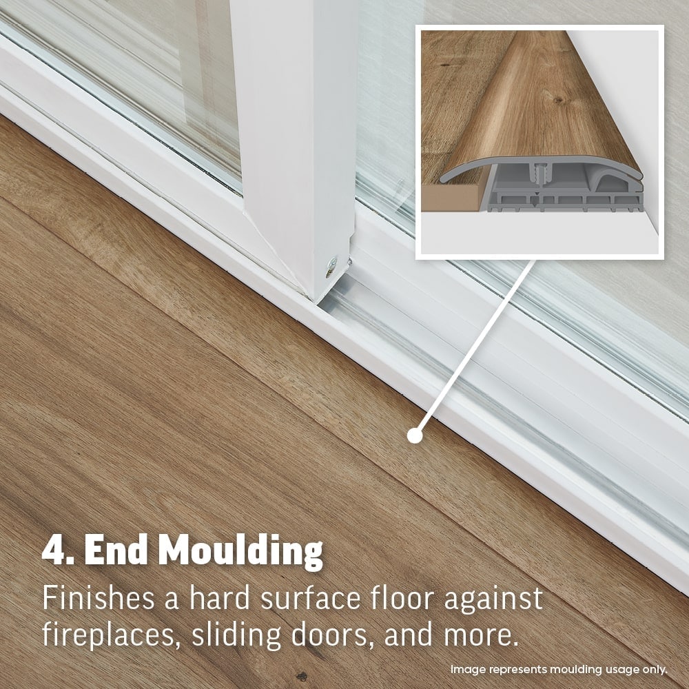 Complete your flooring project with this easy-install 4-in-1 moulding for a seamless, waterproof transition in a refined Austrian Olive Wood finish.