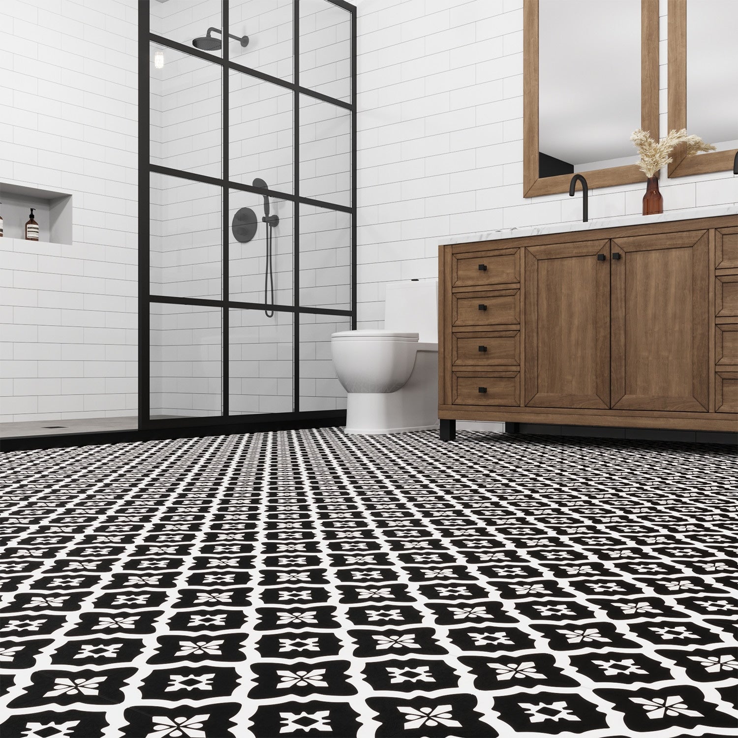 The Dark Venetian pattern delivers chic, high-contrast geometry that electrifies a room with modern charm. Its crisp black-and-white motif becomes an instant focal point, pairing beautifully with warm woods and streamlined fixtures. Try it in a powder room or entryway for a fashion-forward statement underfoot. A refined take on luxury living, made effortless with peel-and-stick ease.