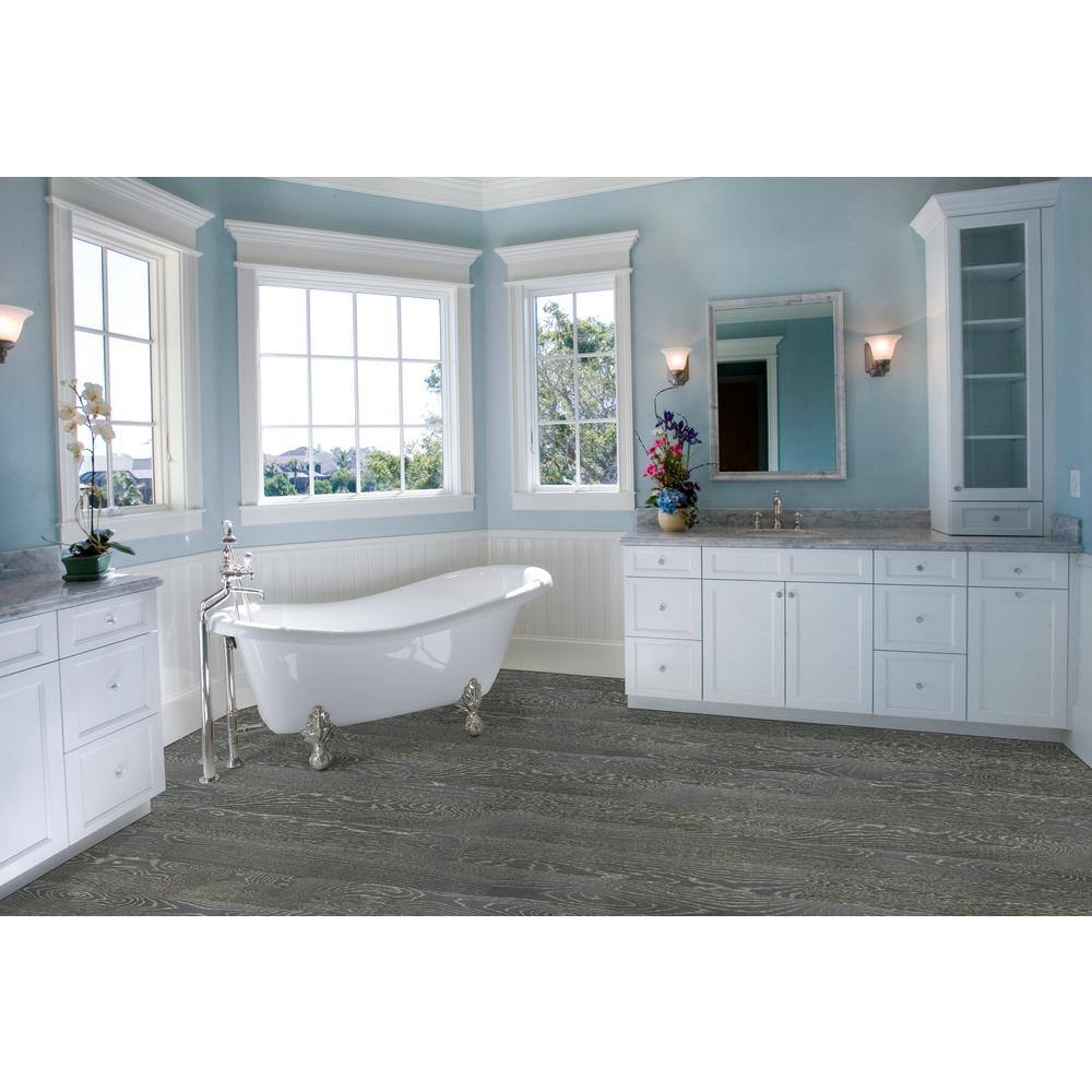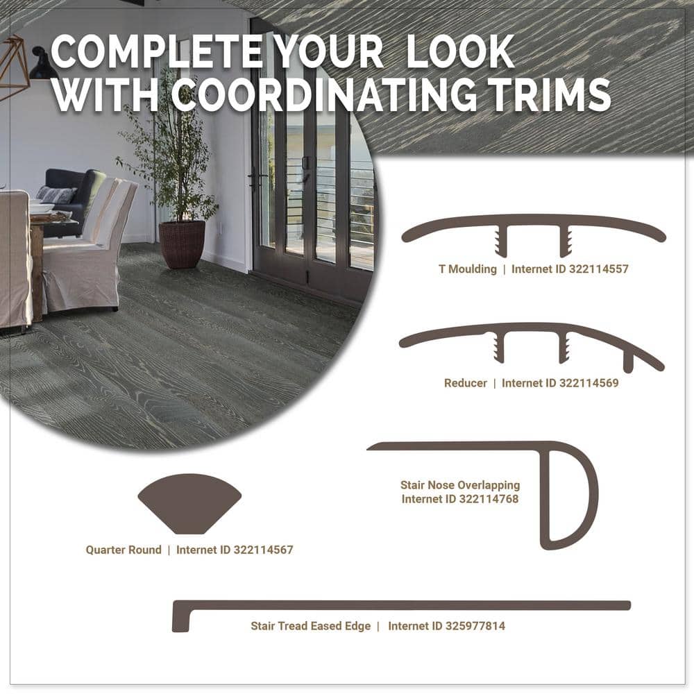 The Carlo Oak Wood Flooring from the A&A Surfaces Woodridge Series elevates any room with its elegant gray tones and wire-brushed finish. Engineered for both beauty and durability, this flooring features a waterproof core and wear-resistant technology, making it ideal for busy homes and light commercial spaces. Enjoy effortless installation with the click-lock system and a lifetime residential warranty.