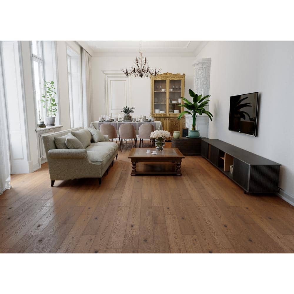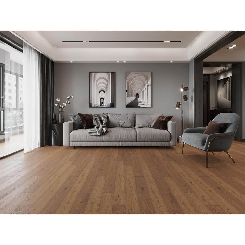 The Neah Oak Wire Brushed Engineered Hardwood Flooring by ACQUA FLOORS epitomizes timeless beauty and sophisticated living. Its rich oak veneer is masterfully wire-brushed to reveal natural textures, creating a canvas underfoot that transforms any room into a luxurious retreat. Imagine pairing this flooring with minimalist furniture to allow the intricate grain to shine, or using it to add warmth to industrial decor. A floor that doesn't just complement your space, but defines it—an essential foundation for luxury and longevity.