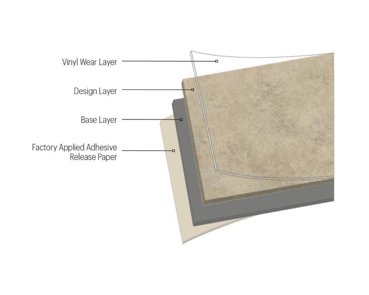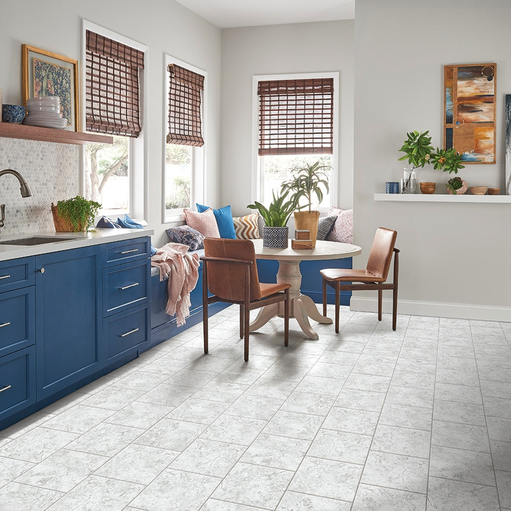 Achieve the elegance of marble with the easy install of peel-and-stick vinyl. This 12-in x 12-in groutable tile from Armstrong’s Crescendo series resists scratches, stains, and wear—ideal for kitchens, baths, and high-moisture areas.