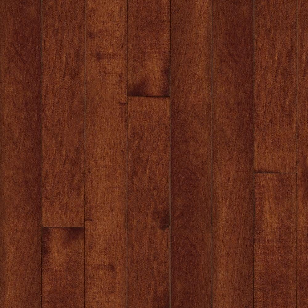 Discover the Bruce American Originals Salsa Cherry Maple solid hardwood flooring, featuring a sleek 5/16 inch thickness that is both eco-friendly and versatile. This flooring boasts a stunning high-gloss finish and a square-edge design for a smooth, traditional look that elevates any space. Perfect for residential applications, it offers easy installation with glue or staple-down methods, even over concrete subfloors.