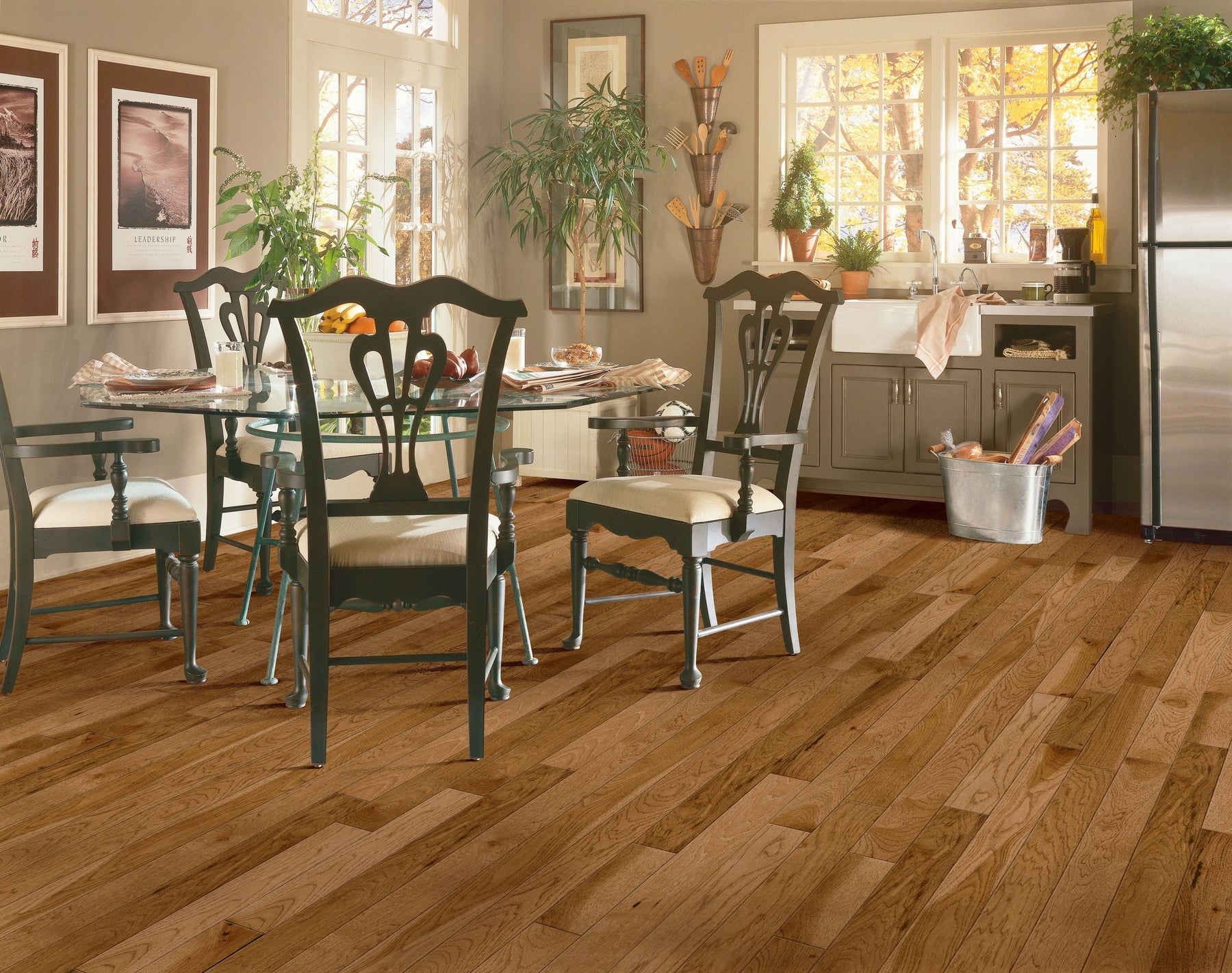 Elevate your space with Bruce Oxford Brown Hickory Hardwood Flooring—experience the enduring beauty today.
