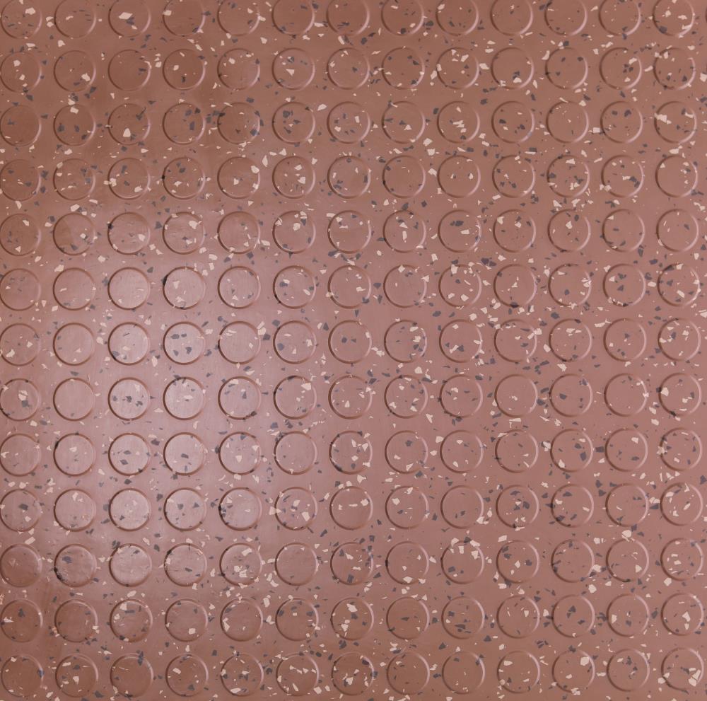 This milk-chocolate rubber tile lays down a sophisticated, modern rhythm with its subtle circular texture—grounded yet chic. The matte sheen and warm tone temper industrial strength with a soft, hospitable glow. Use it to anchor a monochrome scheme or pair with crisp whites and brushed steel for a tailored, gallery-ready look. It’s a quietly luxurious foundation that marries high design with everyday durability.