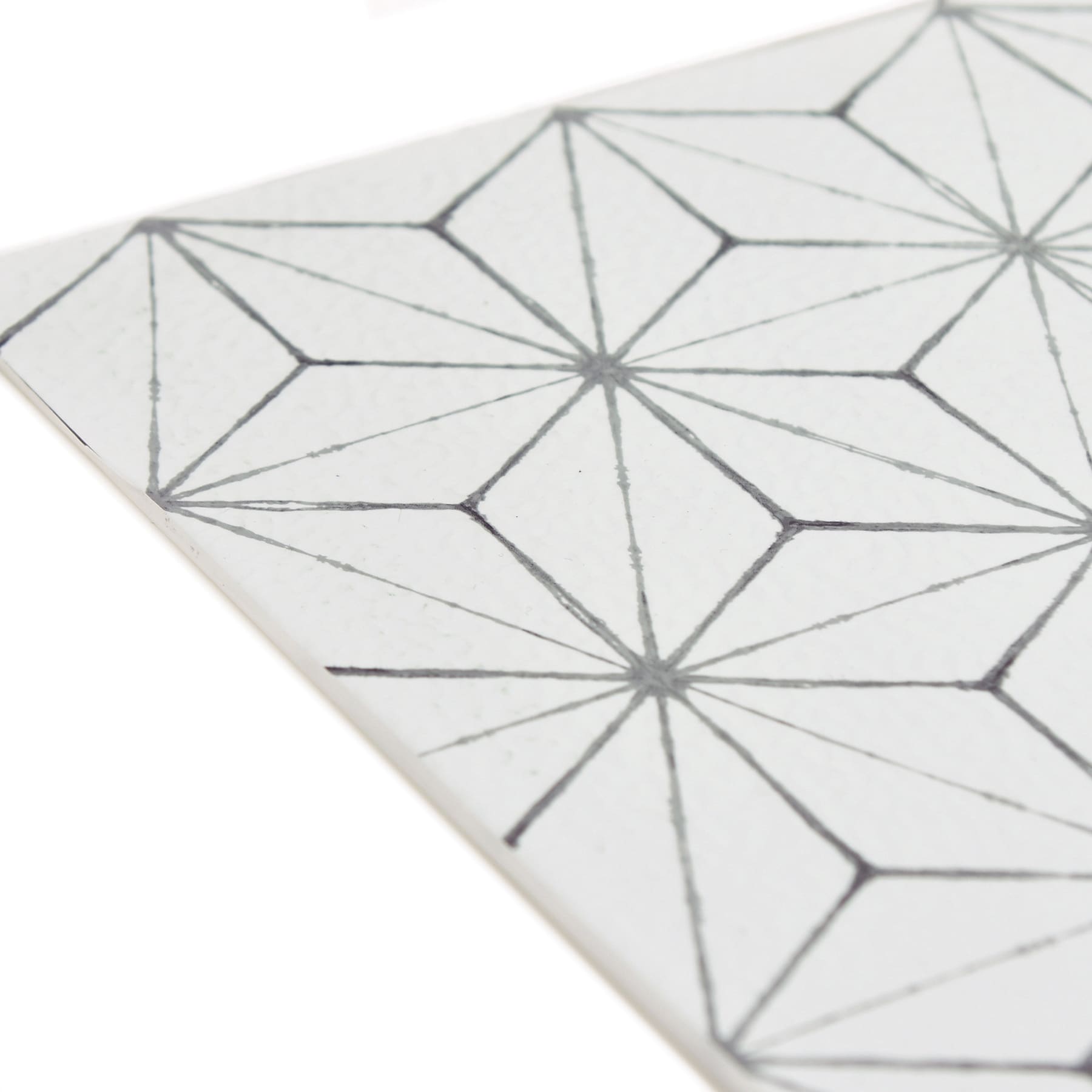 Refresh floors with these self-adhesive FloorPops vinyl tiles featuring a modern white geometric pattern. Each 12-in x 12-in tile has a 2.76-mil wear layer and low-luster textured finish that’s water resistant and easy to clean—ideal for fast, grout-free updates.
