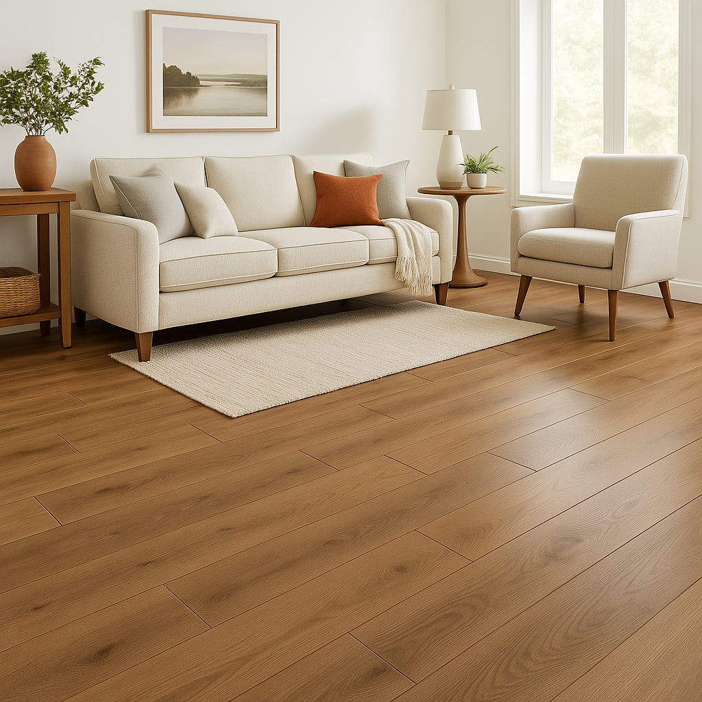 The Aquinas Cove Oak Laminate Flooring is a masterpiece of design and functionality, bringing the warmth of natural oak into your home with its lifelike texture and rich copper undertones. Its waterproof and scratch-resistant properties make it a practical choice for high-traffic areas, while its easy installation ensures a seamless transformation of your space. Pair it with minimalist furniture to highlight its timeless beauty, or use it as a foundation for bold, eclectic decor. This flooring is not just a surface—it's a statement of refined living.