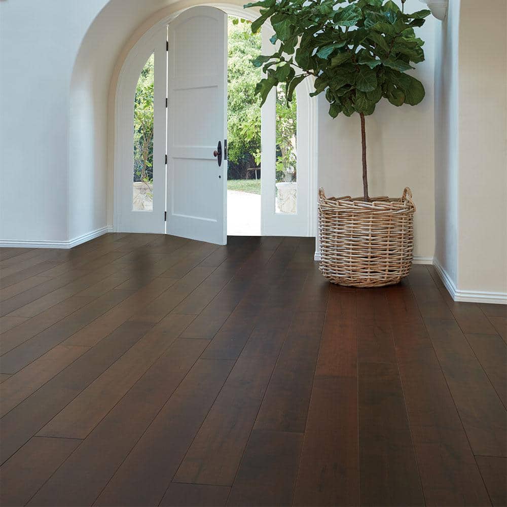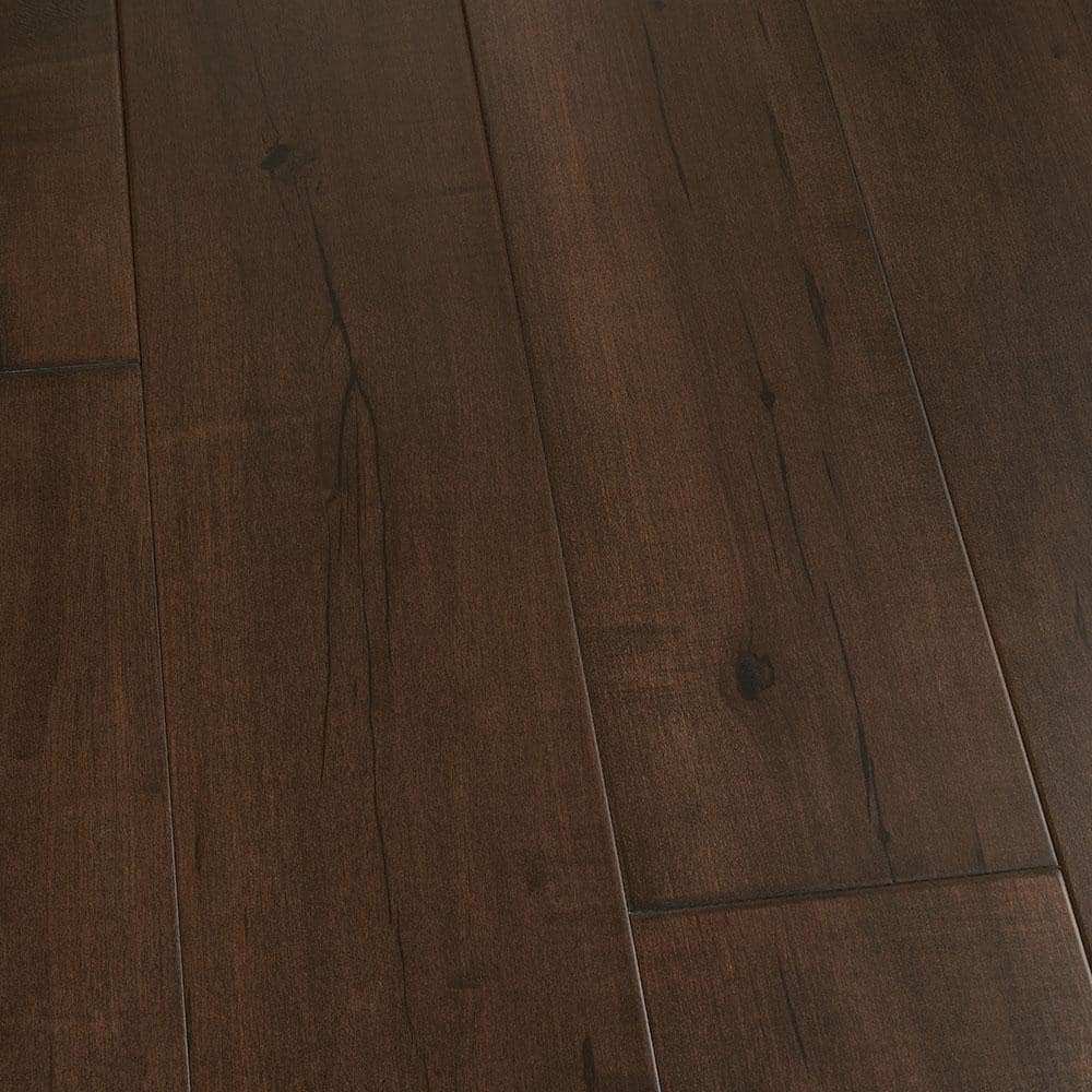 Envision your living space graced with the exquisite touch of Malibu Wide Plank Maple Zuma flooring. Its subtly hand-stained surface adds depth and character, while the wire-brushed texture evokes a sense of timeless sophistication. Imagine these rich, warm tones mingling with your favorite decor pieces, creating an inviting and luxurious atmosphere. With its durable finish and stylish appeal, this flooring is not only a foundation but a statement of elegance in any home.