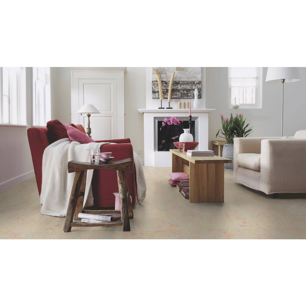 Imagine a living space that buzzes with the lively hues of a Fruit Punch palette, all anchored in the natural elegance of Marmoleum's groundbreaking laminate flooring. This product transforms any room into a tapestry of warmth and vibrance while reducing noise through its soft cork underlayment. Style it with minimalist furnishings to let the floor's marbled effect sing or pair it with bold accents for a dramatic interior narrative. Make this flooring the foundation of curated luxury and timeless style.