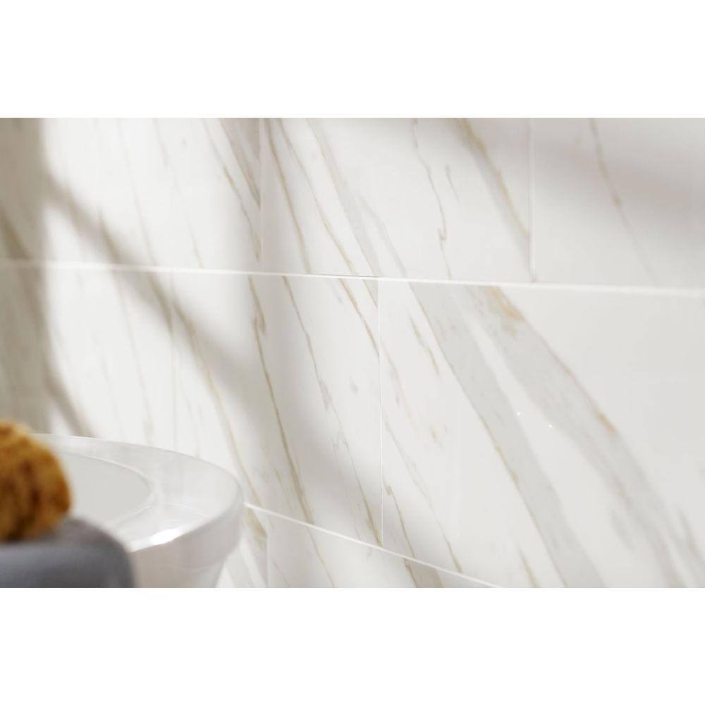 Transform your space with the luxurious MSI Calacatta Ivory 12 in. x 24 in. polished porcelain tile. This elegant tile mimics the exquisite veining of natural stone, offering a sophisticated yet affordable option for any home improvement project. Frost-resistant and water-impervious, it's ideal for bathrooms, kitchens, and beyond.