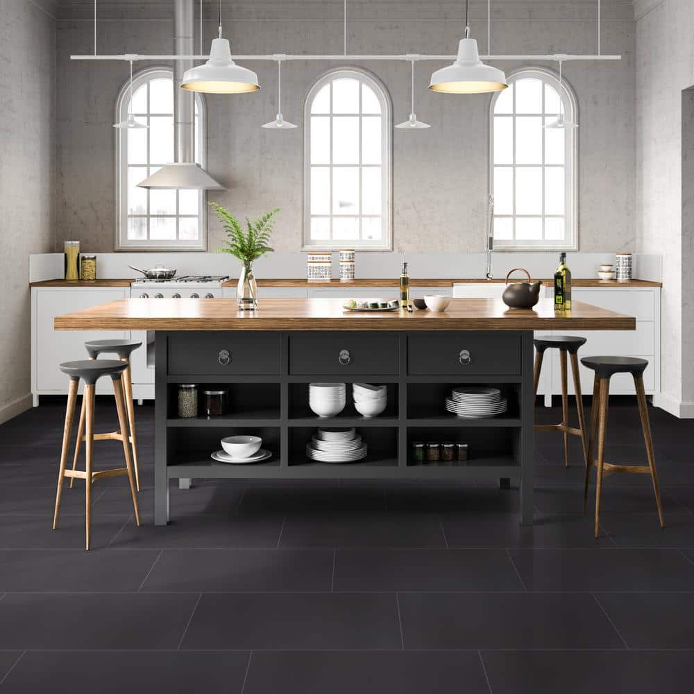 A sleek black, stone-look porcelain tile in a matte finish for modern floors and walls. Durable, waterproof, and rated for residential and commercial use, it’s ideal for kitchens, baths, and living spaces indoors or out.