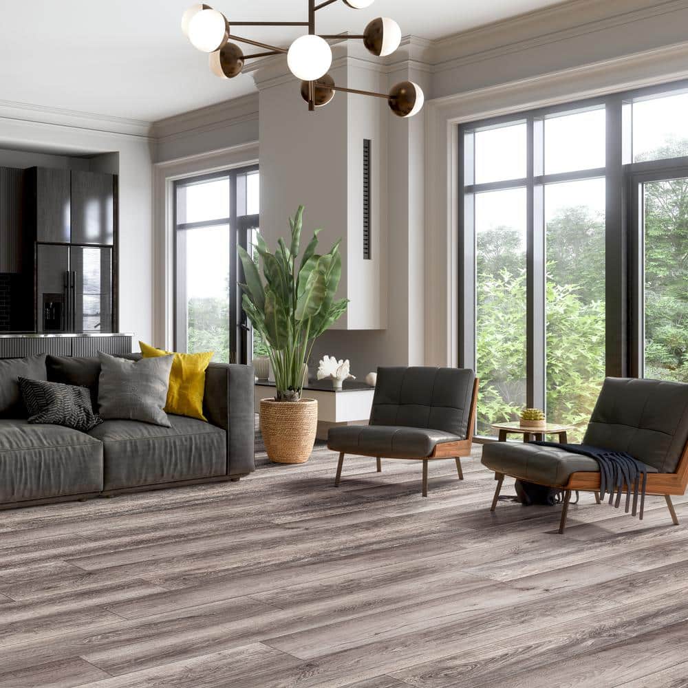 Embrace the timeless charm of nature with MSI's Cyndya Grove Waterproof Laminate Flooring. Its realistic wood grain patterns and rustic textures infuse spaces with warmth and character, making it a perfect fit for any design aesthetic. Imagine this rich brown flooring against white walls, styled with live-edge wooden furniture for an elegant retreat that cocoons you in luxury. A staple for those who treasure the interplay of natural elements within the modern home, it's a testament to both sophistication and practicality.