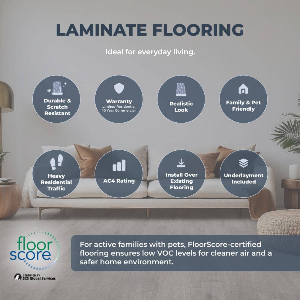 Laminate Flooring Features Easy Install,Floating,Heated,Noise resistant,Scratch resistant