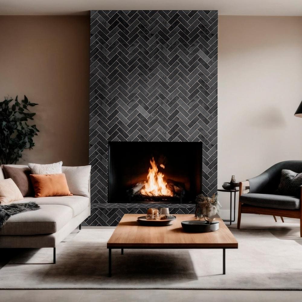 Sculpted Charcoal Slate, Tailored for Modern Herringbone Drama