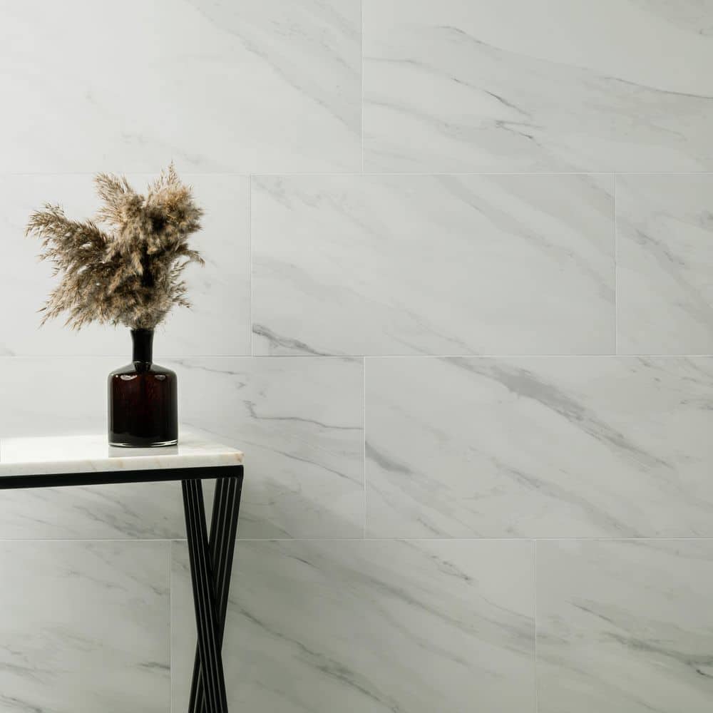 Kolasus White by MSI brings a marble-inspired look to floors and walls with durable, matte-finish porcelain. Rectified edges allow tight grout lines, and each case covers 16 sq. ft., ideal for bathrooms, kitchens, and living areas.