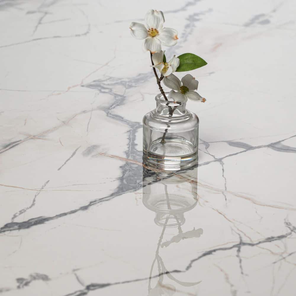 • Marble-Inspired Design: Creamy white background with bold gray veining for timeless elegance