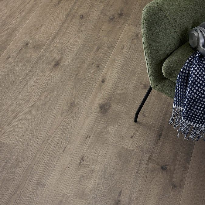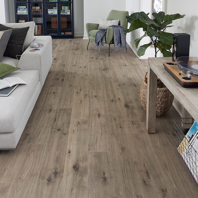 The Pergo Hallfield Hickory Laminate Flooring transforms any space into a haven of sophistication. Its smokey grey tones and wirebrushed finish evoke the timeless beauty of natural wood, offering a serene and elegant atmosphere. Use this flooring to anchor a room's design, pairing it with plush textiles and minimalist décor to emphasize its understated elegance. Truly, this flooring is not just functional but an exquisite piece, foundational to luxury living.