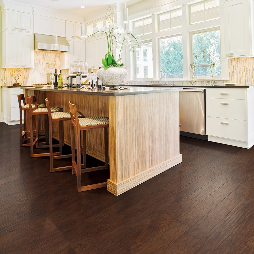- Elegant Finish: Handscraped surface in a medium-gloss brown for a stylish, sophisticated look.