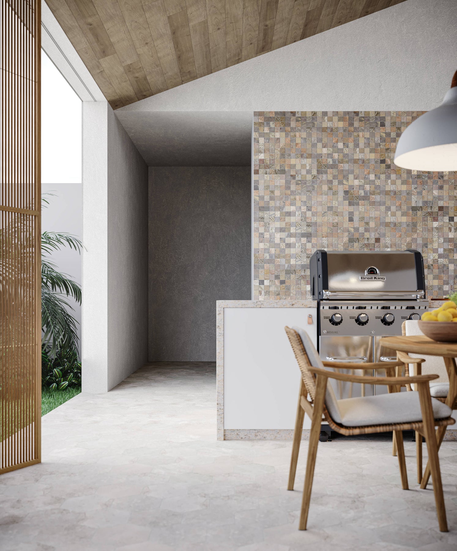 Transform your space with the arresting beauty of the Satori Cosmo Argento tile, where function meets form in a stunning symphony. The hexagonal design dances with shadows and light, creating alluring geometric patterns that captivate the eye. Picture these tiles adorning a kitchen backsplash, harmonizing with stainless steel fixtures, or gracing a bathroom wall with their understated elegance. Harness the power of contemporary design to redefine your interiors as truly luxurious retreats.