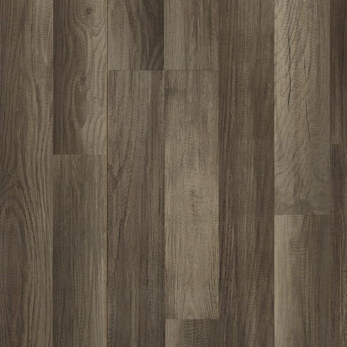 • Style: Rustic gray wood planks emulate high-end flooring for a premium look.