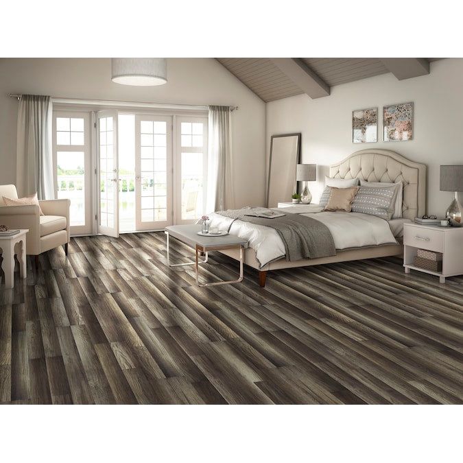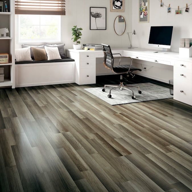 Style Selections Aged Gray Oak Laminate Flooring brings the rustic charm of aged gray oak into your home with a contemporary twist. The 8-mm thick planks feature a sleek and easy-to-install interlocking system, perfect for DIY enthusiasts seeking minimal effort with maximum impact. With a sturdy AC-3 rating, this flooring offers durability and aesthetic appeal, enhancing any living space with its rich, classic wood tones.