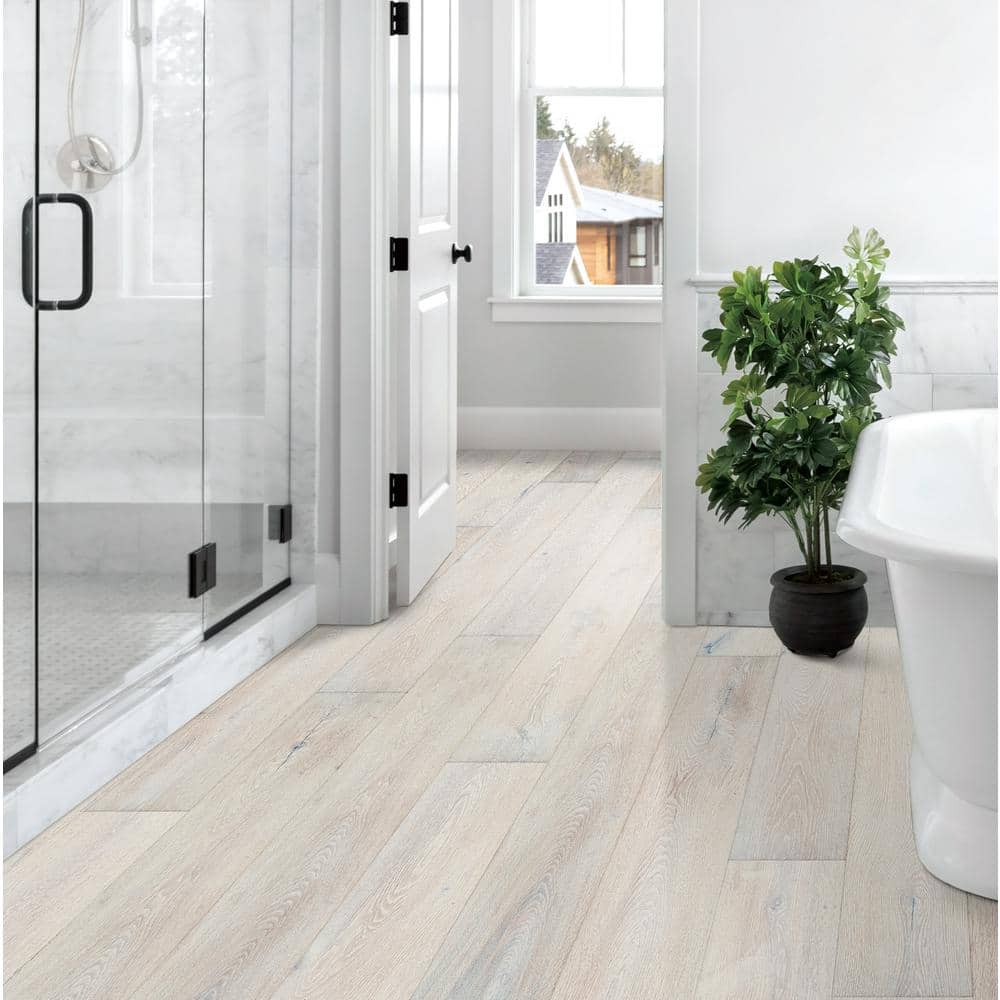 Sure+ Lambswool White Oak 1/4 in. T x 6.5 in. W Click Lock Wire Brushed Engineered Hardwood Flooring (21.7 sq.ft./case)
