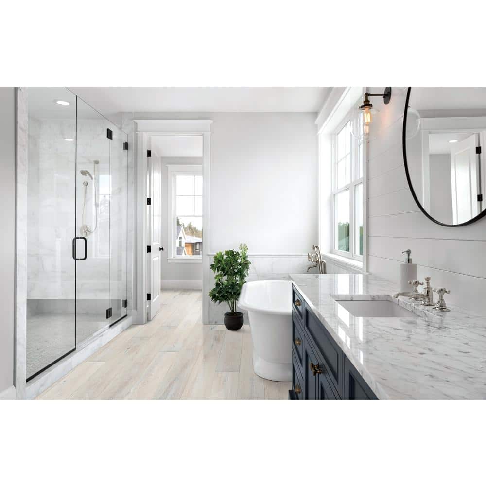 Transform any room into a sanctuary of sophistication with the Sure+ Lambswool White Oak flooring. With its subtly wire-brushed texture and delicate lambswool hue, this engineered hardwood creates an enchanting canvas that complements a wide array of interior styles. Imagine this flooring beneath your favorite vintage armchair or beneath the sleek lines of your kitchen island, imparting a sense of understated opulence. Elevate your living space with this essential addition, crafted to endure the life you love.