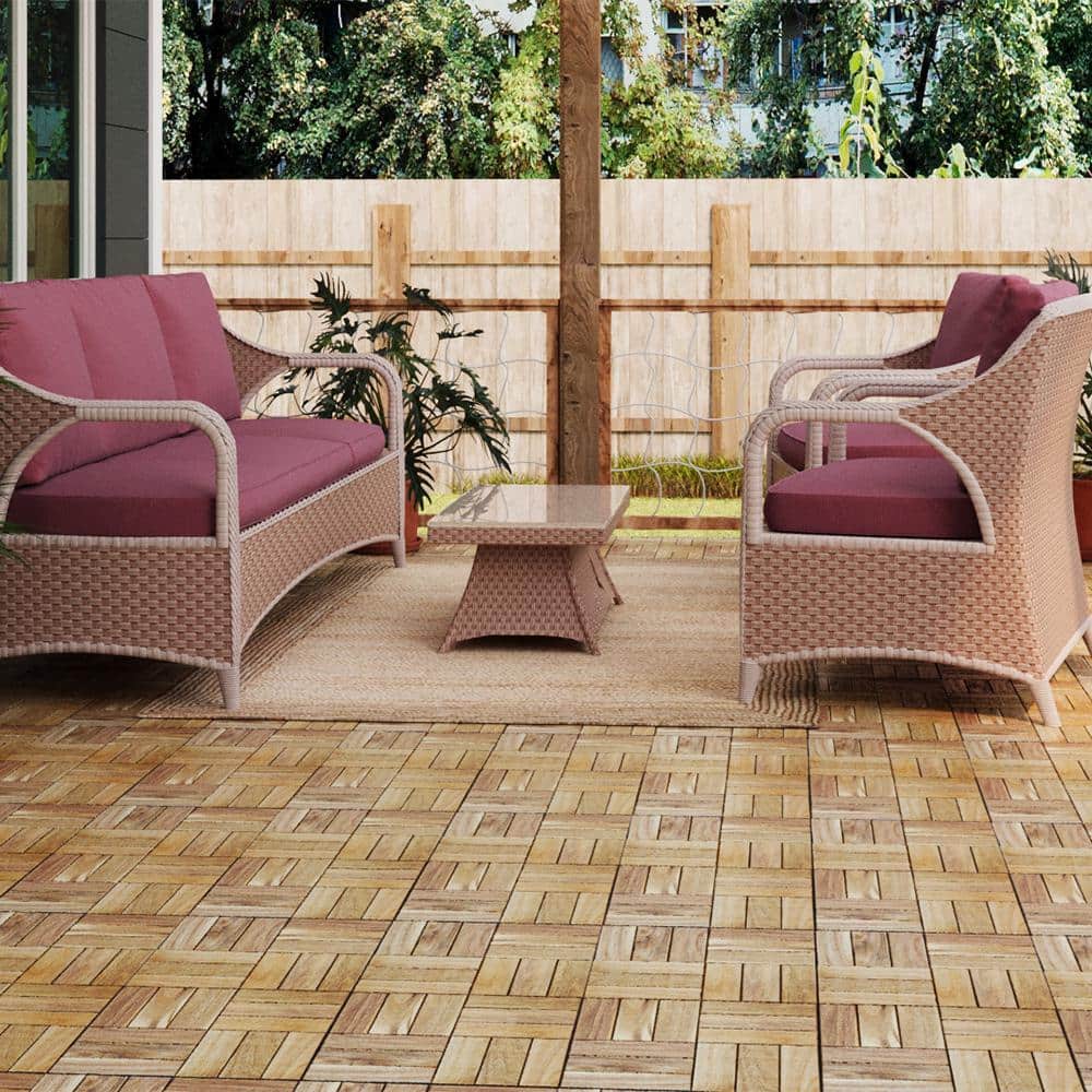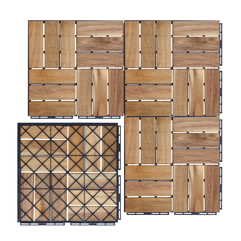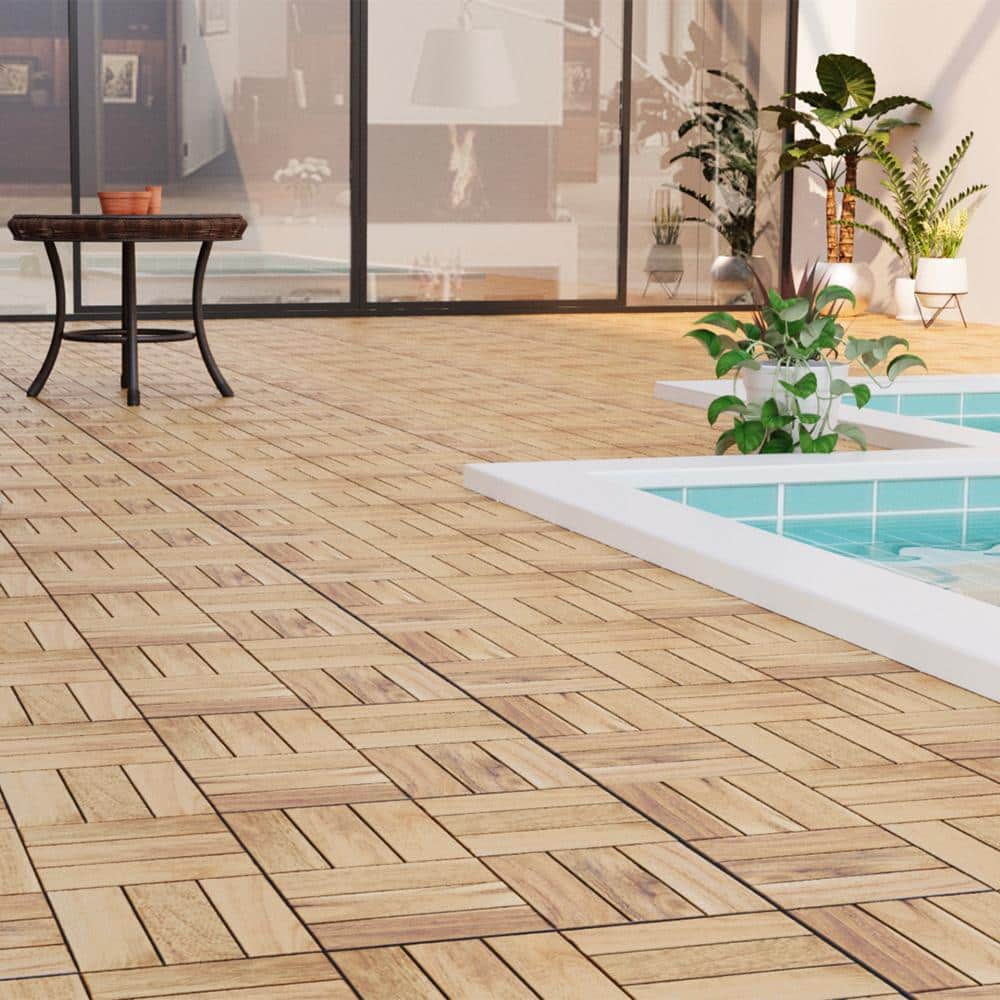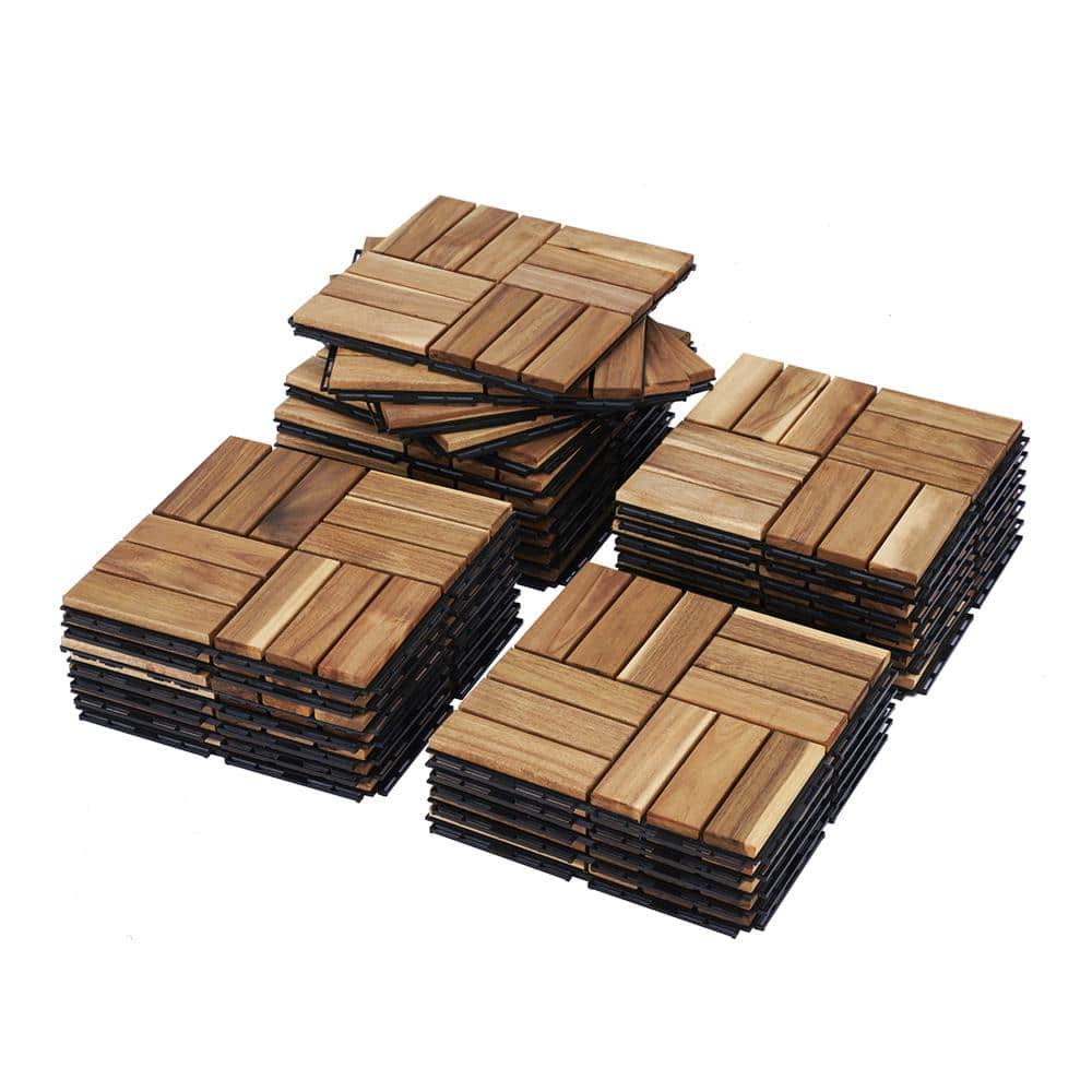 YOFE Natural Acacia Wood 3/4 in. T x 12 in. W Solid Hardwood Flooring Interlocking Deck Tiles-Checker Pattern(30 sq.ft./case)