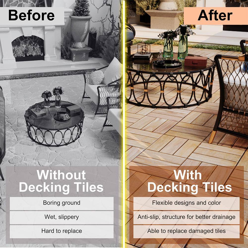 Elevate your indoor and outdoor spaces with the YOFE Natural Acacia Wood Interlocking Deck Tiles. Designed for durability and style, these tiles effortlessly transform any area into a vibrant and welcoming space. With an easy snap-together design, they are perfect for DIY enthusiasts looking for a quick and beautiful flooring solution.