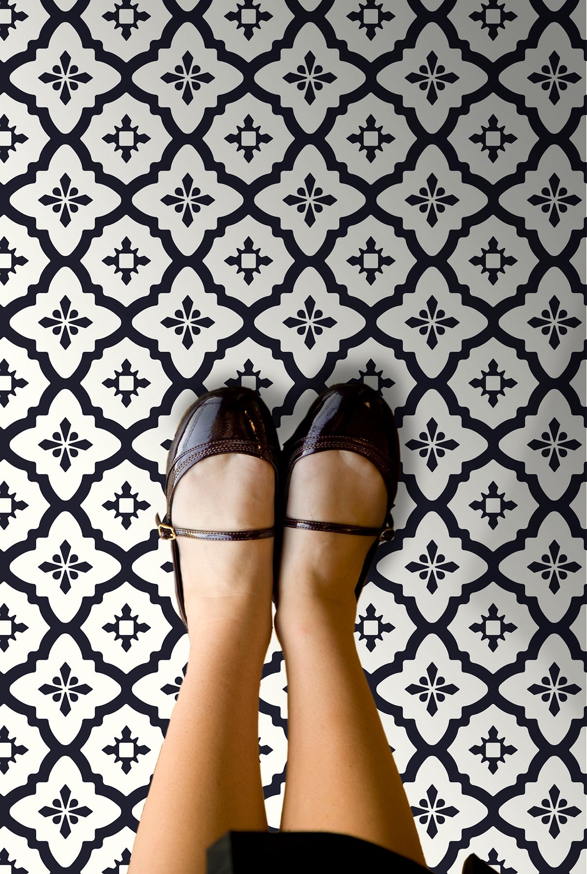 Update floors instantly with these water-resistant peel-and-stick vinyl tiles from FloorPops. Each 12-in x 12-in tile features a black-and-white patterned look with a textured low-luster finish and permanent adhesive for durable, grout-free installation. Ideal for indoor residential spaces like kitchens and baths.