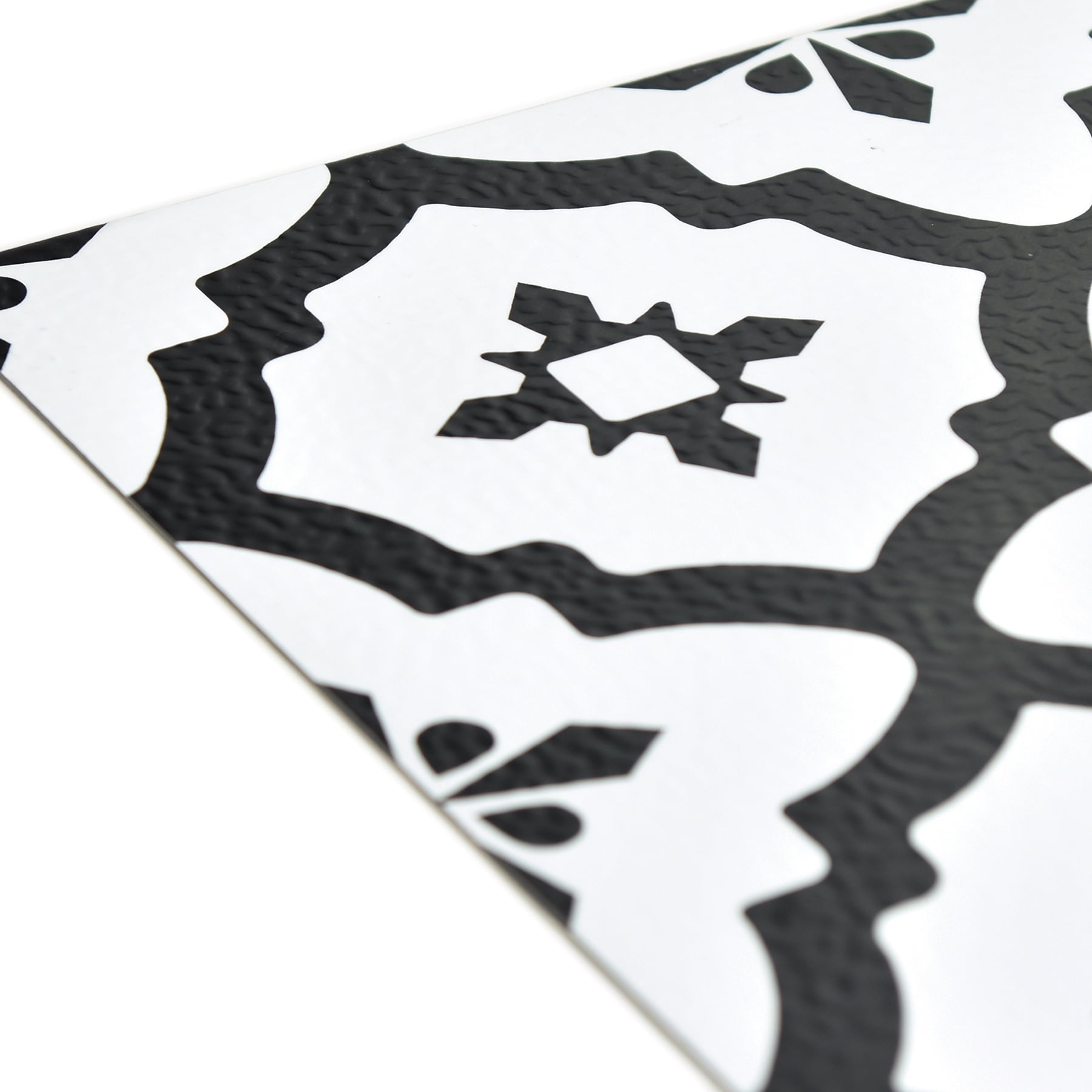 Bring home this peel-and-stick vinyl tile set for a fast, durable style upgrade that covers 20 sq ft with timeless black-and-white pattern.