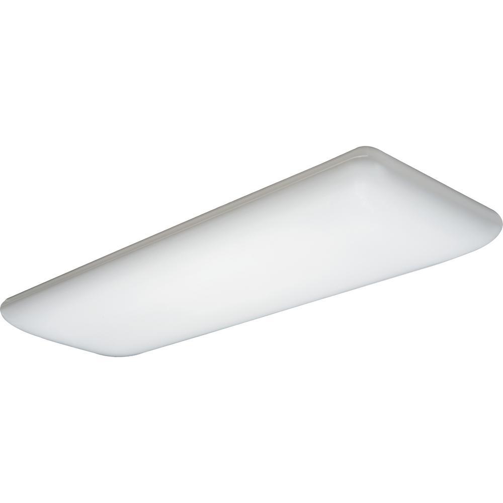 The Lithonia Lighting 4-Light Ceiling Fluorescent Light features a sleek, contoured design and is ideal for use in kitchens, office areas and closets. This light provides general illumination in residential and light commercial areas. This product comes with an acrylic lens.