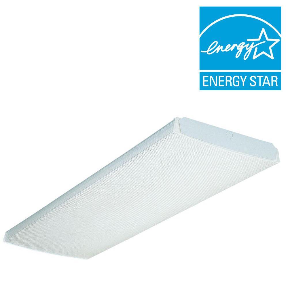 The Lithonia Lighting's Wrap Flush Mount Ceiling Light uses energy efficient fluorescent technology to deliver energy savings. With a white finish and durable steel construction, it is both an attractive and practical solution for your general lighting applications. Providing high light output, the fixture is ideal for environments needing a clean-lined, decorative surface mount fixture, such as kitchens, utility rooms, workshops and garages.