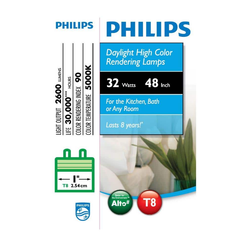 Philips 32-Watt 4 ft. Linear T8 ALTO Fluorescent Tube Light Bulb, Daylight 5000K, 2-Pack